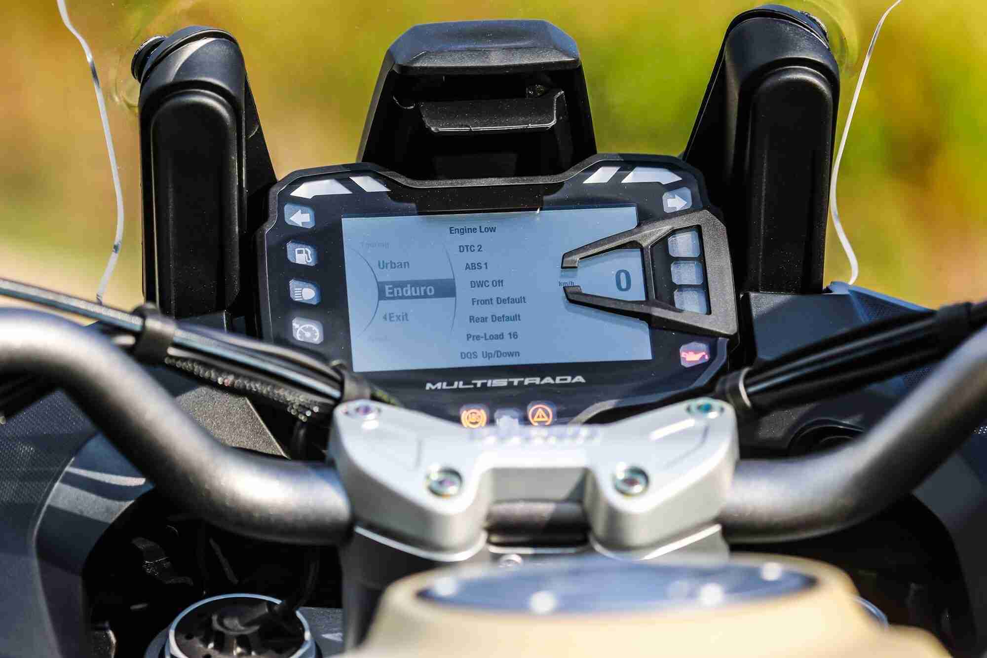 While the new Ducati Multistrada 1260 Enduro provides impressive performance, power delivery is kept under control thanks to the Riding Modes, the new Ride by Wire function which ensures both smoother throttle control and outstanding safety, and the DQS (Ducati Quick Shift) Up & Down, which significantly improves the ride experience by ensuring precise, fluid upshift and downshift gear meshing.