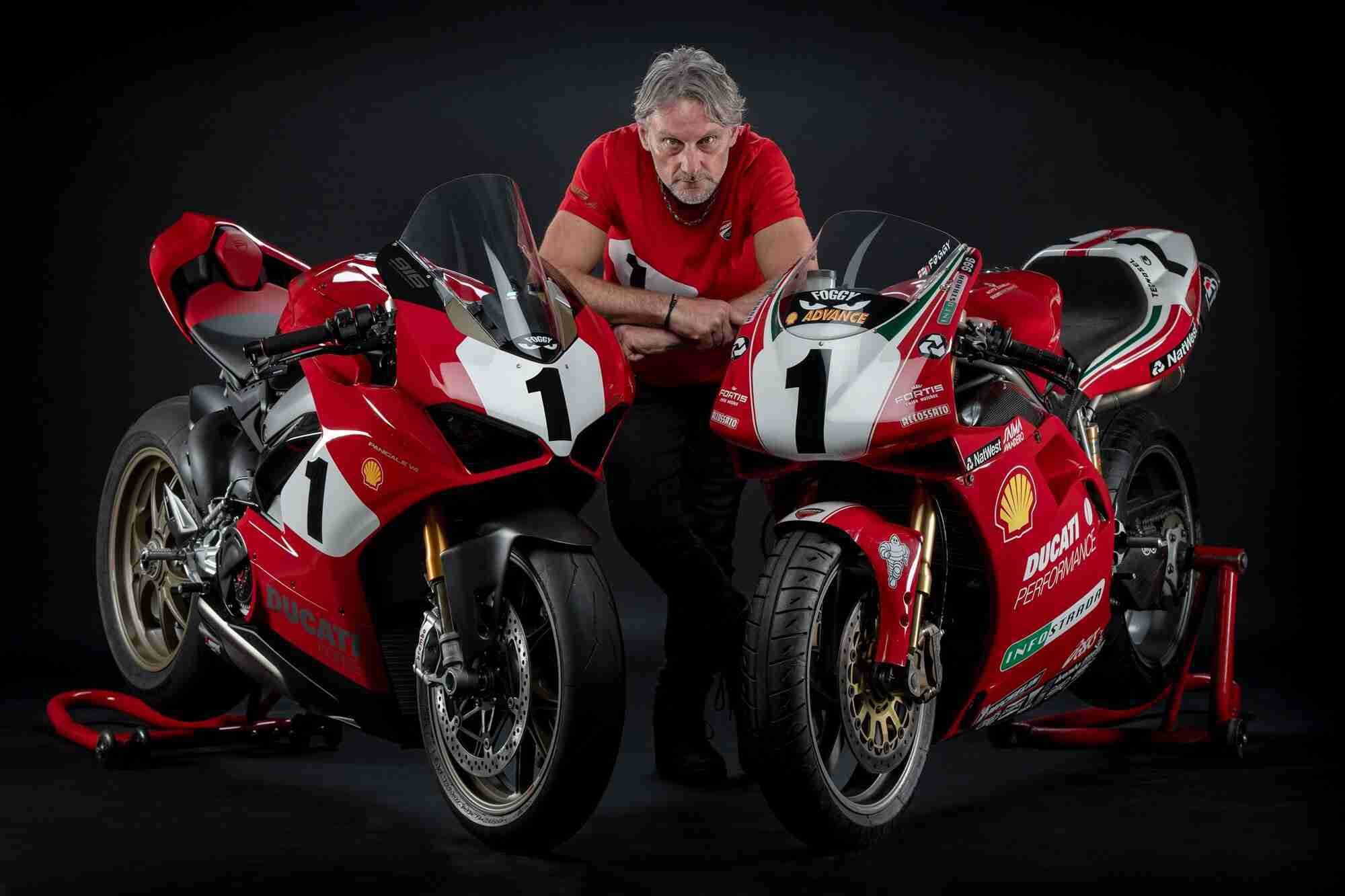 “I’m thrilled to be here at this event,” stated Carl Fogarty after riding the Panigale V4 25° Anniversario 916 onto the stage at Pebble Beach. “The Ducati 916 gave me some fantastic, unforgettable moments. It played a starring role in my career and in the history of the World Superbike Championship. On the wider motorcycling scene, it set a whole new standard of style and performance. I’m proud to have played a pivotal role in that success story, and equally proud to be here today and celebrate this important anniversary by officially unveiling this breath-taking bike.”
