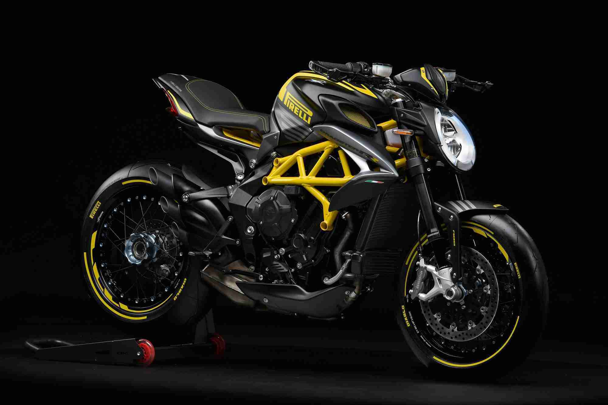 A splendid result of an alliance between MV Agusta and Pirelli. Its gritty design with a black and yellow base and the distinctive Pirelli logo is exclusive to this model and makes it truly unmistakable. The tank and fairing are made of rubber specially formulated by Pirelli Research and Development technicians, to ensure superior resistance to scratches and rubbings. It continues to use the 798 cc liquid cooled 3-cylinder engine which pumps out about 140 hp and 87 Nm of extreme torque. Here, the engine is redesigned to a six-speed gearbox with a slip assist clutch, for a quicker and easy shift.