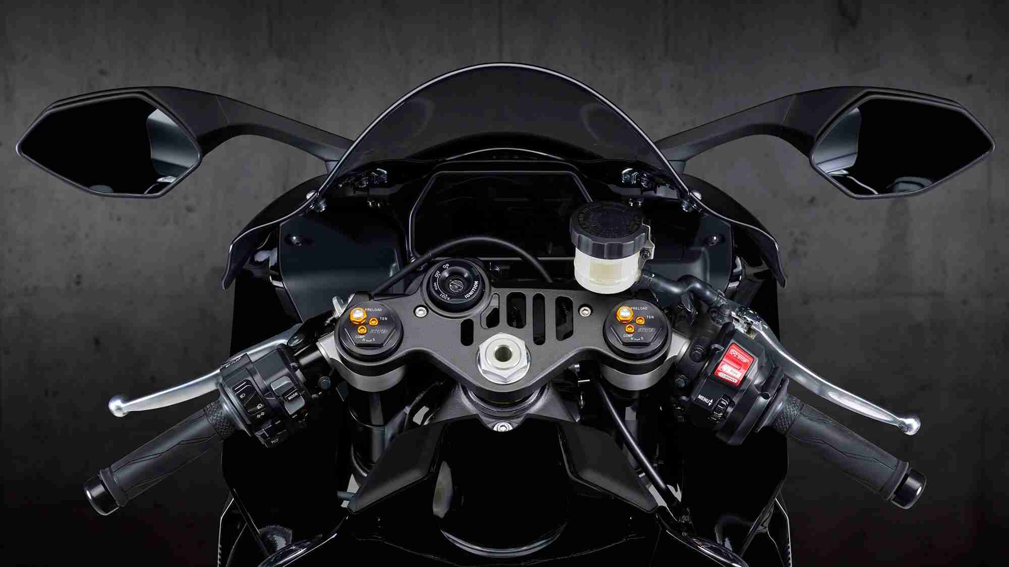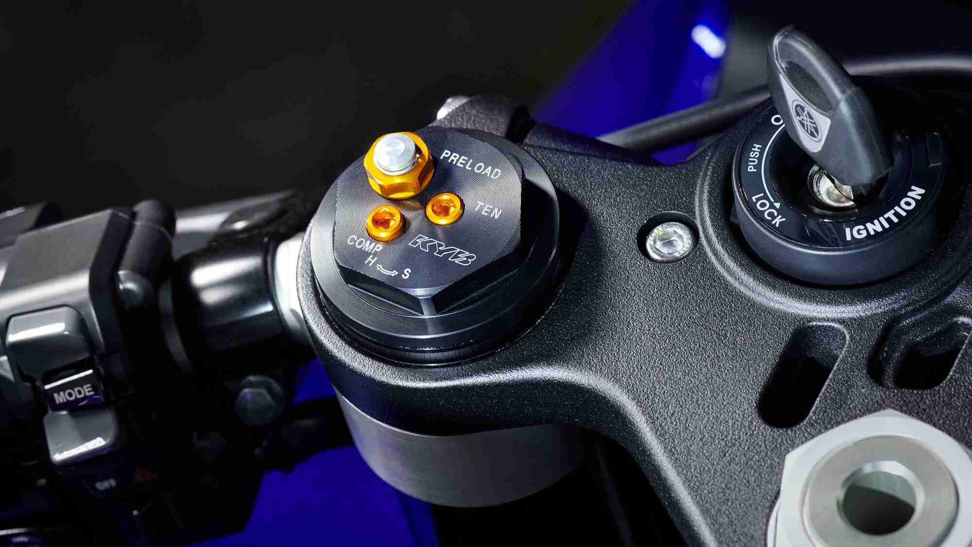 · KYB upside-down front fork with new internal shim stack design (R1)
