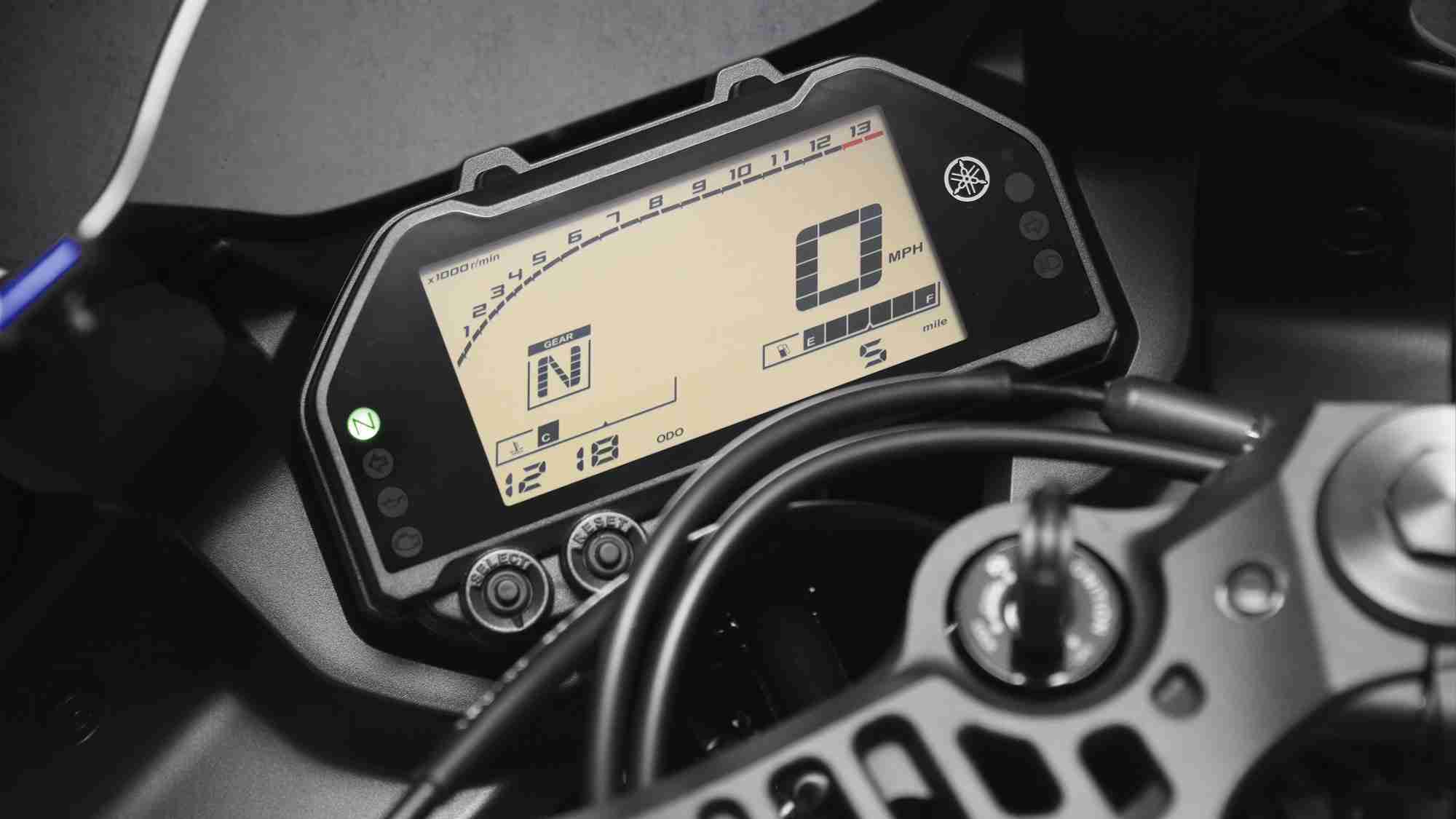 The R3’s inverted fork works with a Monocross rear shock to provide exceptional handling, with balanced chassis rigidity, a near 50/50 weight balance, and damping and spring settings designed for a wide range of road conditions.