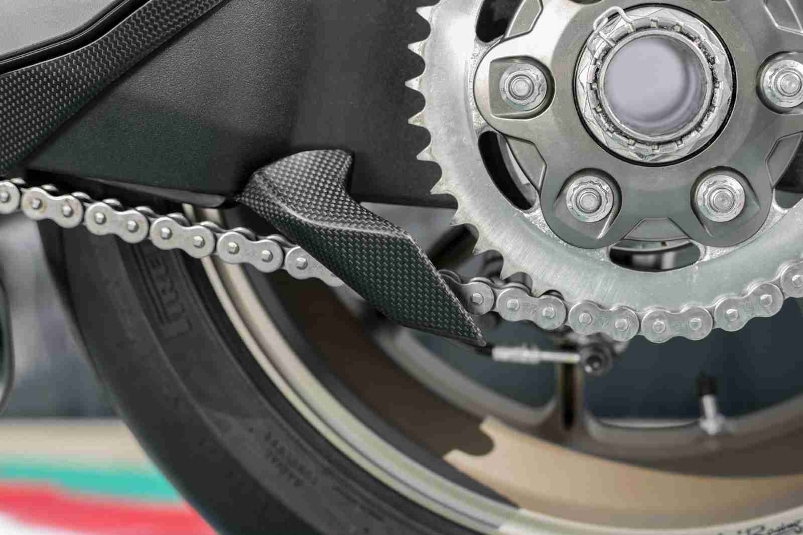 An exclusive accessory made of carbon fiber, created to ensure maximum protection of the frame from accidental scratches and give the bike an even more aggressive look, enhancing its racing spirit.