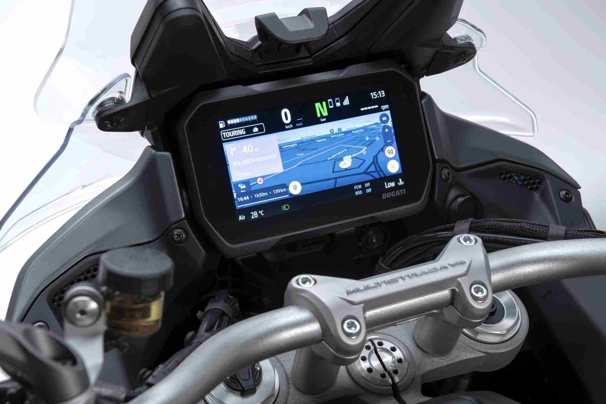 It is “Touring” thanks to the main maintenance intervals set every 60,000 km, to the obsessive attention paid in the development phase to ride comfort, to the Radar systems (the first motorcycle in the world to have both front and rear), to the map navigator that can be viewed on the dashboard and to the cornering lights.