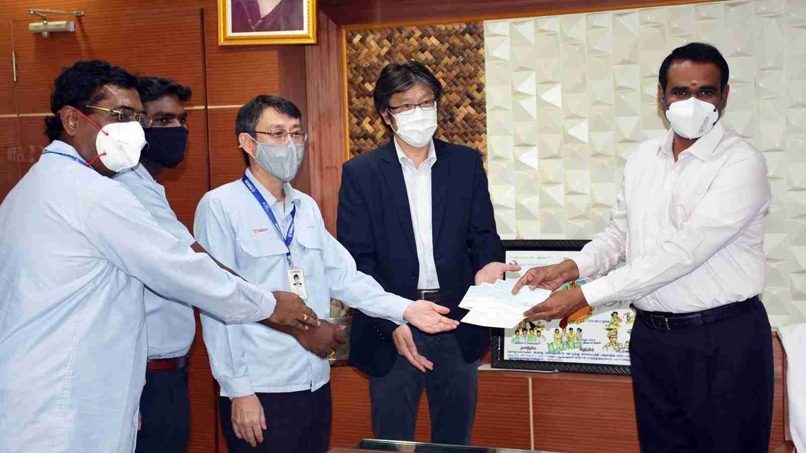 Senior Management members from Yamaha Motor India Group (YMIG) and representatives from the company’s internal employees union has handed over a cheque of Rs. 25 lakhs to Mr. Thiru P Ponniah, District Collector & Magistrate, Kancheepuram, Tamilnadu to support the government in its efforts to control the pandemic in the state.