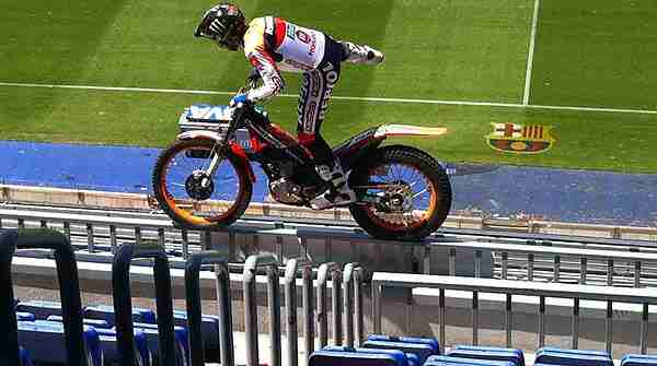 Showing his support for the Catalan team, Trials World Champion Toni Bou does what does best in this video, and rides his trial bike through, on, and over the Camp Nou grounds. Popping a wheelie while going up the stadium steps, and doing a stoppie all the way back down are just some of the Spaniard’s claims of fame, and probably would go on the list of things our healthcare provider wouldn’t cover. It’s pretty impressive stuff, and merges two of the biggest sports in Spain into one video.