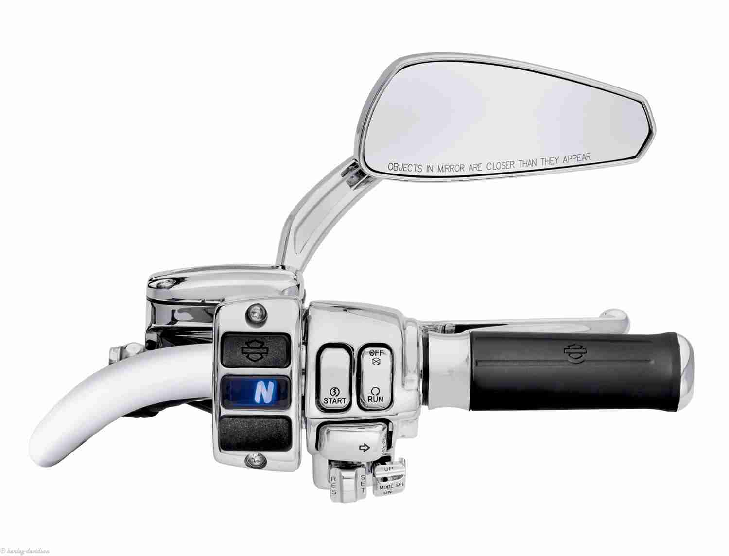 The new Digital Gear Indicator (P/N 70900038 Chrome, P/N 70900078 Black; $219.95) from Harley-Davidson Genuine Motor Accessories eliminates gear-selection guesswork. Conveniently located on the handlebar for line-of-site viewing, the bright LED display is easy-to-read with a quick glance. When the clutch is out, the display indicates the current gear, or a large “N” when the transmission is in the neutral position. A built-in photocell automatically adjusts the display for improved visibility in direct sunlight, and dims the display at night to reduce distraction.