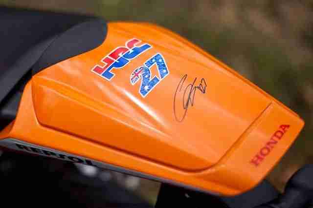 The familiar Repsol colours complement the Fireblade’s race-ready profile and emphasise the aggressive details of its cowling, chassis and high-performance components. All this is further enhanced and personalised by the edition of Casey Stoner’s number 27, his signature and branding.