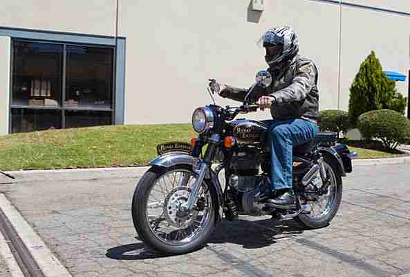 World-famous comedian and host of NBC’s Tonight Show, Jay Leno, equally well-known in automotive circles as an authority on classic vehicles and owner of one of the greatest collections of classic cars and motorcycles in the world has recently added a Royal Enfield to his vast collection. Royal Enfield has entered the California market recently and Mike Frankovich, owner of NoHo Scooters, a popular scooter shop and Royal Enfield dealership in North Hollywood suggested it to Leno.