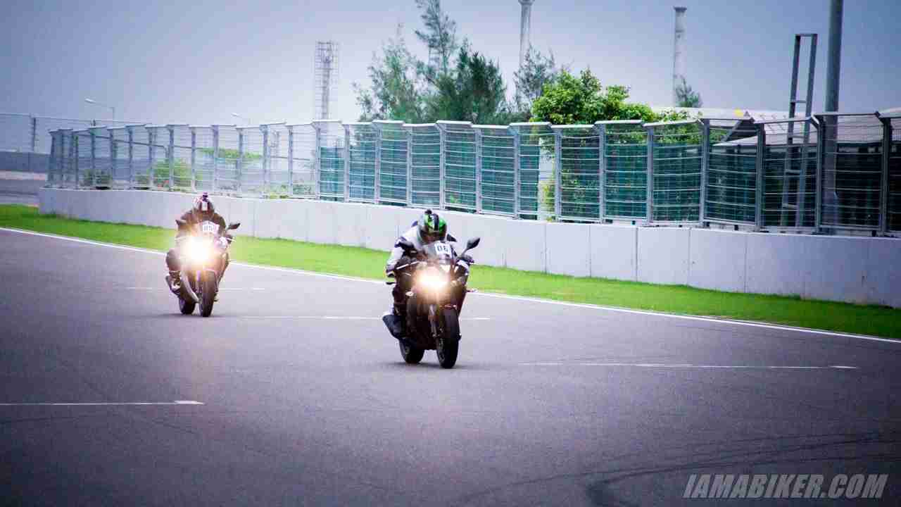 The Buddh Circuit being the fast circuit that it is, the R3 saw very few hard braking areas and the rest was just up and down on the top three gears. Talking about the gearing the Yamaha YZF-R3 has a properly overdrive 6th gear (ratio – 0.800), not a friendly option on the track. But in real life conditions say like if you are touring, it is a proper value addition and makes a lot of sense. You can potter around in top gear at low speeds and pull away all the way to 160 kmph and beyond with ease. Coming to the tyres, the Yamaha YZF-R3 comes stock with MRF tyres. Off late the newer MRF Zapper FY and Zapper S are actually quite good. Not of the same league as the super sticky Metzelers out there on the RC 390 but definitely performs well in all conditions. So we already know these perform well, and on the R3 it held up quite well even on track. Combine that with the rather plush KYB suspensions at both ends and one thing is very clear. The Yamaha YZF-R3 is most definitely more of an everyday bike and a tourer and not a focused bike like the RC or even the R15.