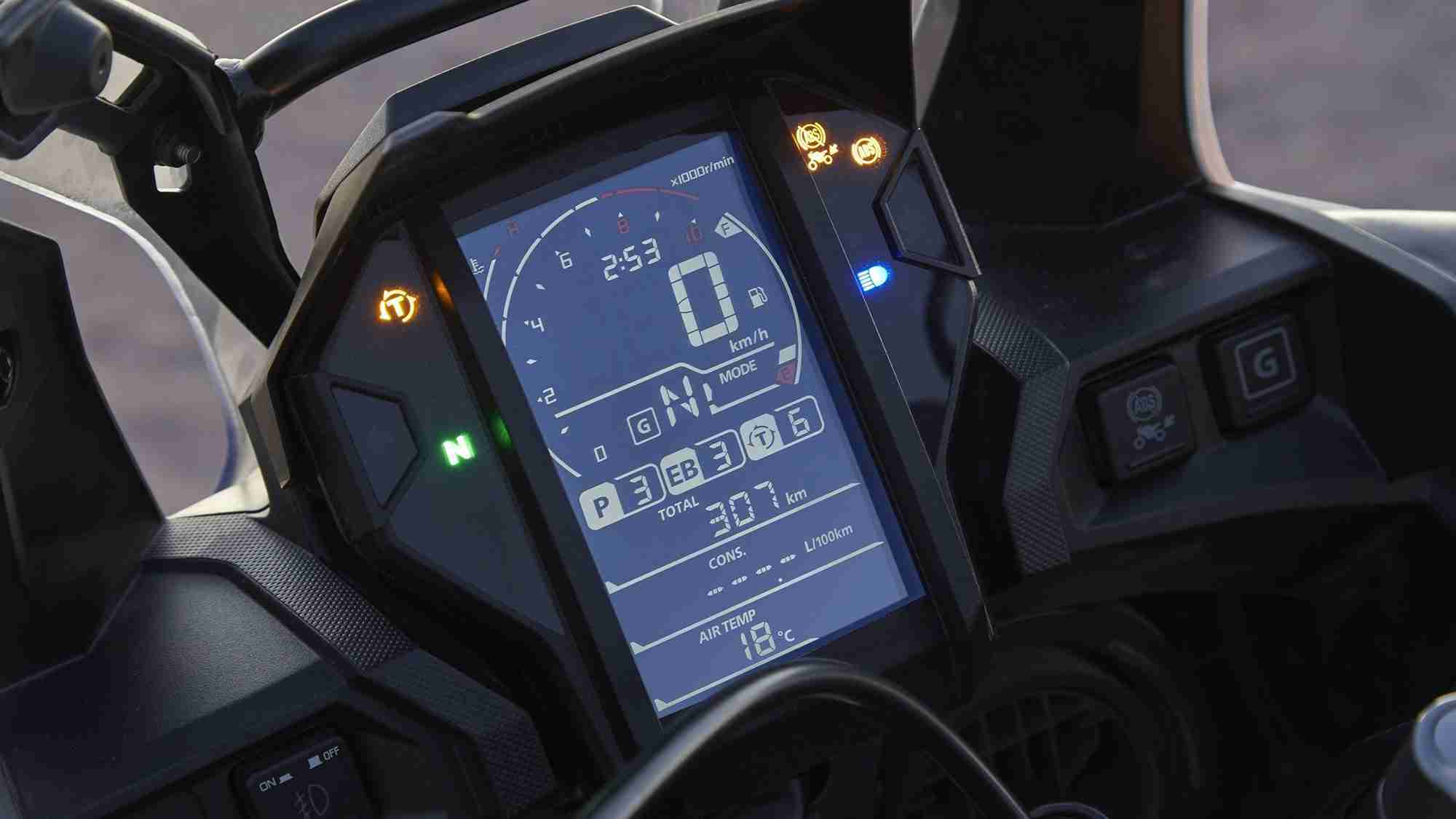 The unique DCT (Dual Clutch Transmission) version features the standard manual mode – allowing the rider to operate gearshifts through triggers on the left handlebar – and two automatic modes. D mode offers the best balance of fuel economy and comfort cruising whilst S mode gives three different, sportier shift patterns to choose from. The DCT is also fully equipped to operate in an off-road environment and off-road functionality is enhanced by the G button. Pushing the G button in any riding mode modifies the control of the clutch system to give a more direct drive.