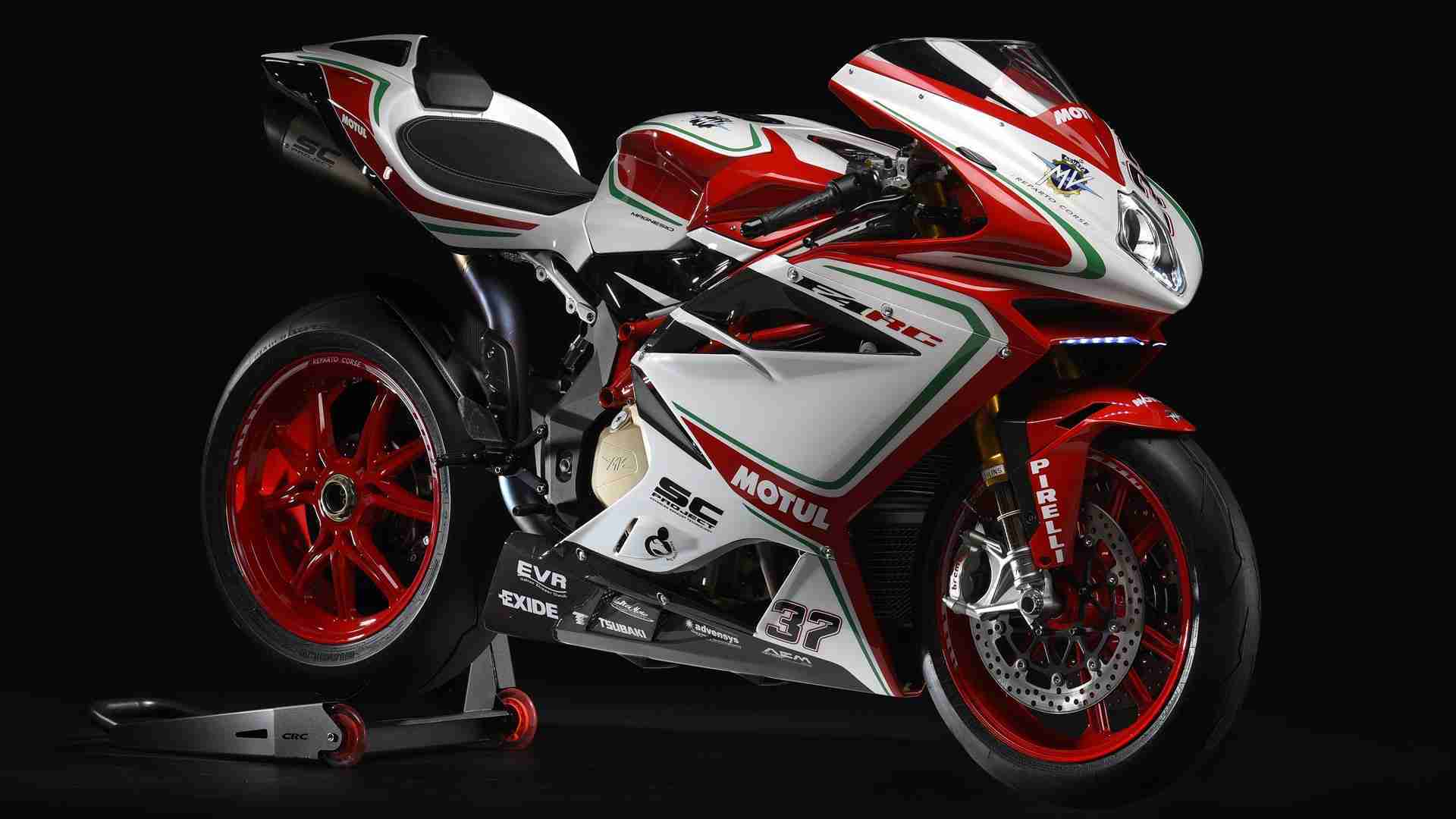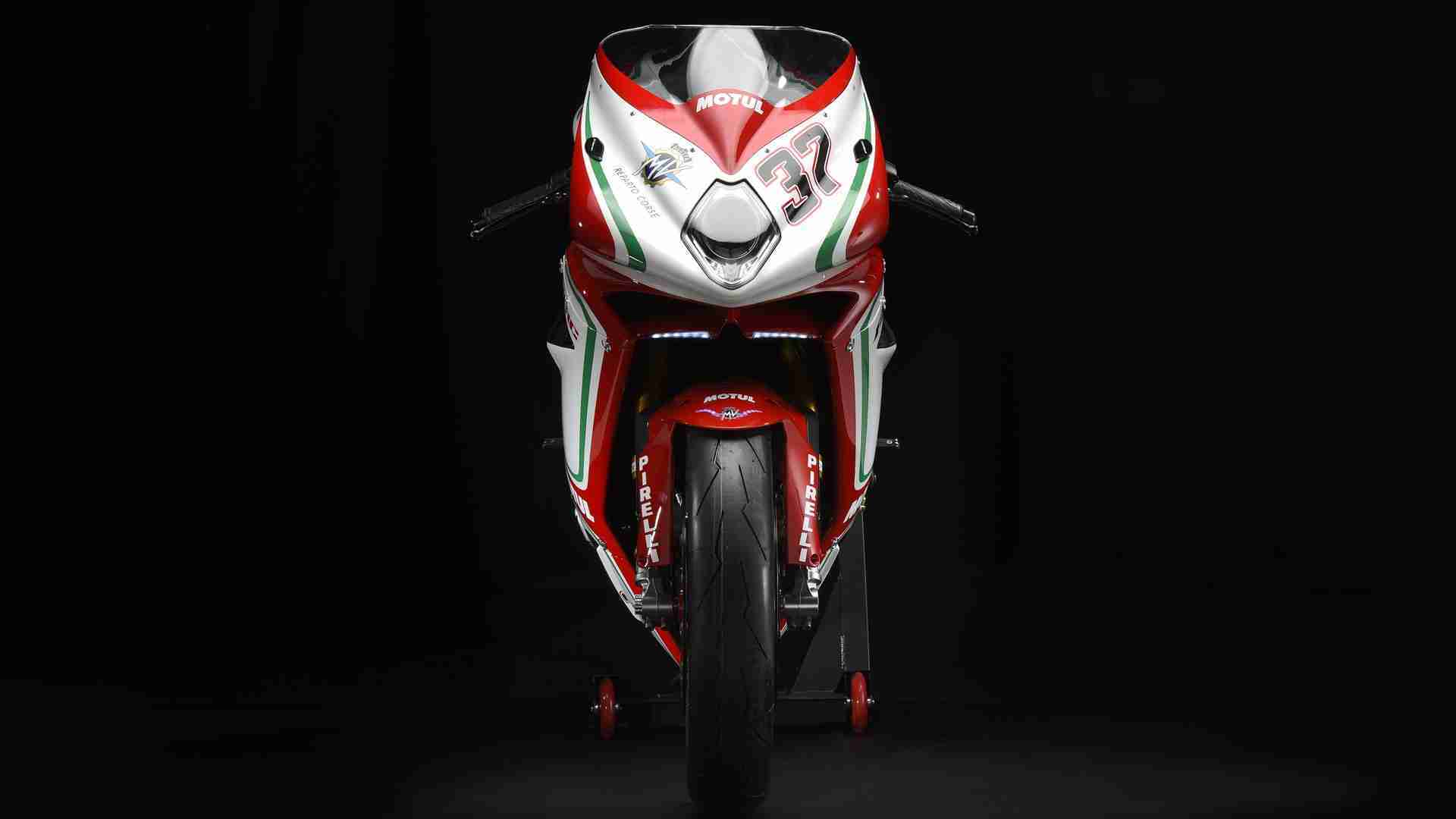 The number 37 on the fairing recalls the number of manufacturers’ titles won by MV Agusta over the course of its long history.