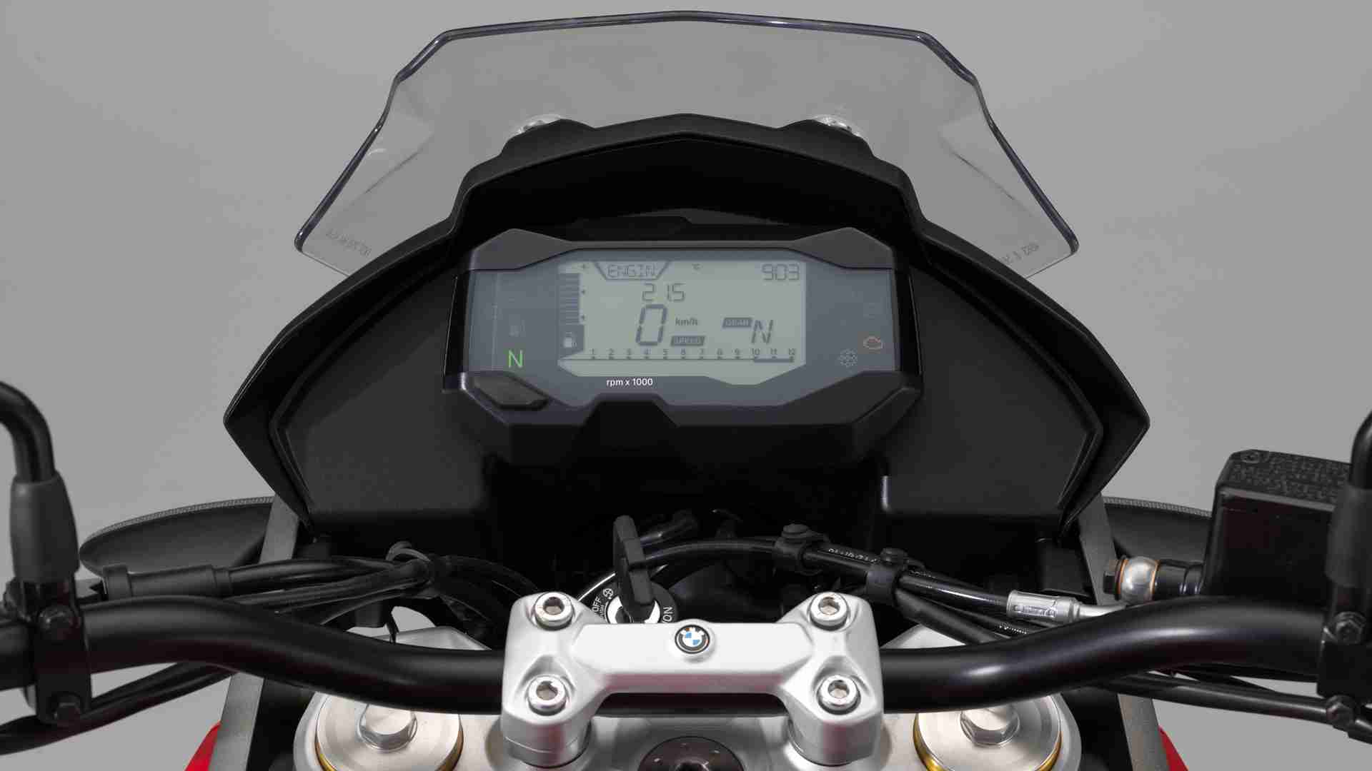 And finally like the G310 R roadster, the new G310 GS has an instrument cluster with a large LCD screen that offers excellent readability and a wide variety of information. The displays include the following: engine speed, road speed, gear, total kilometres, engine temperature, fuel tank level, remaining range, average fuel consumption, average speed and time.