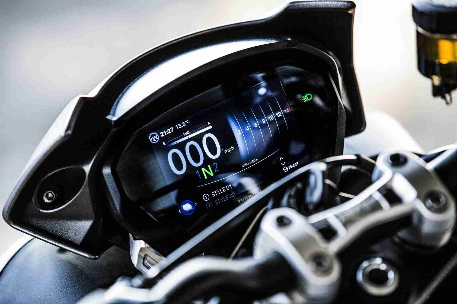 The new Triumph Street Triple RS is also fitted with a quick-shifter allowing for clutchless upshifts that are up to 2.5 times quicker than a skilled rider using a standard clutch upshift.