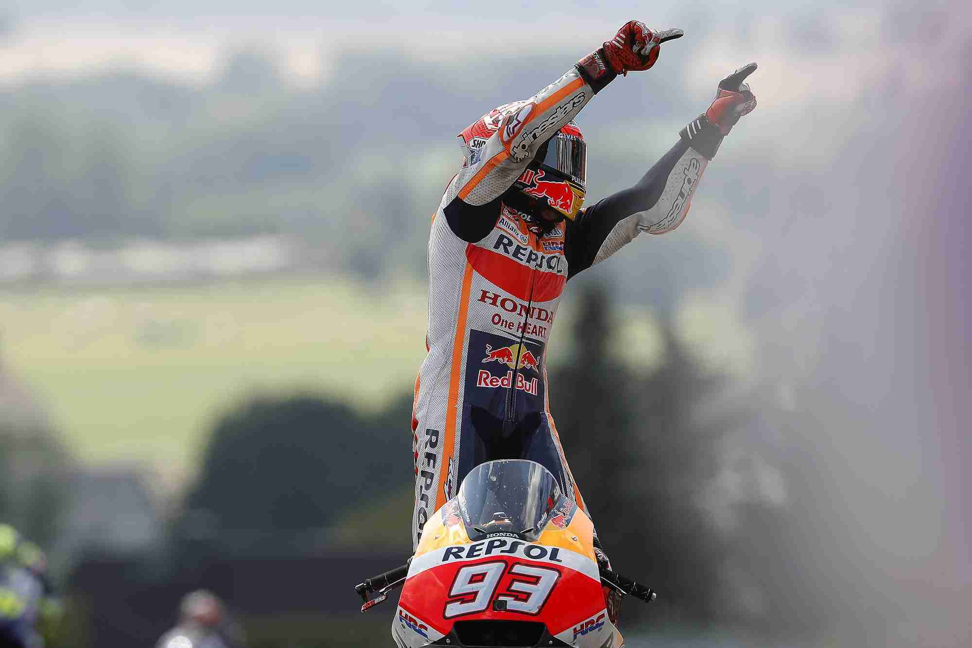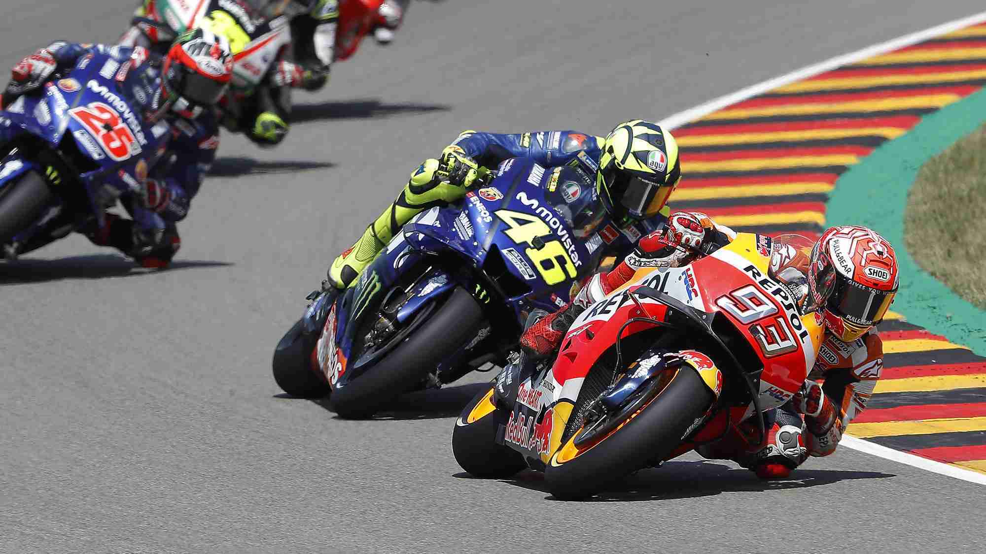 Looking strictly at the numbers, today Marc took a second consecutive win from pole, his fifth victory this season, his 40th MotoGP success, and his 66th across three classes, extending his Championship lead over Valentino Rossi to 46 points with 10 races remaining. In addition, his ninth win at Sachsenring came after nine consecutive poles here, and in his 99th MotoGP race, at the season’s ninth round.