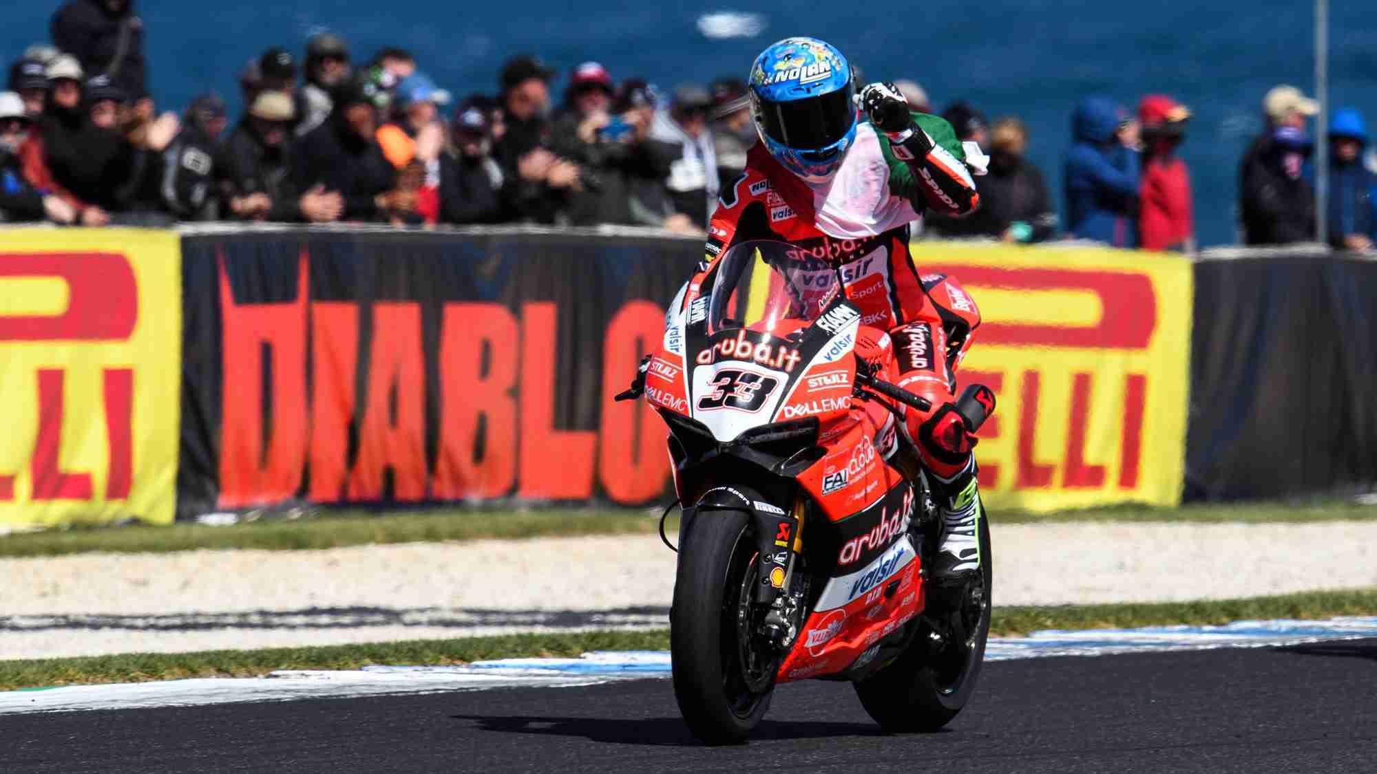 After taking the opening race of the 2018 WorldSBK Championship yesterday, the Aruba.it Racing – Ducati team did the double at Phillip Island (Australia) with Marco Melandri. The race itself went down to the wire and was decided by only 0.021 seconds. It’s Melandri’s 22nd win in WorldSBK, which makes him the most successful Italian in the production-based series. Chaz Davies, on the other hand, rode a strong yet unlucky race, and was forced to retire after crashing during lap 12 at turn 9 while he was in the lead.