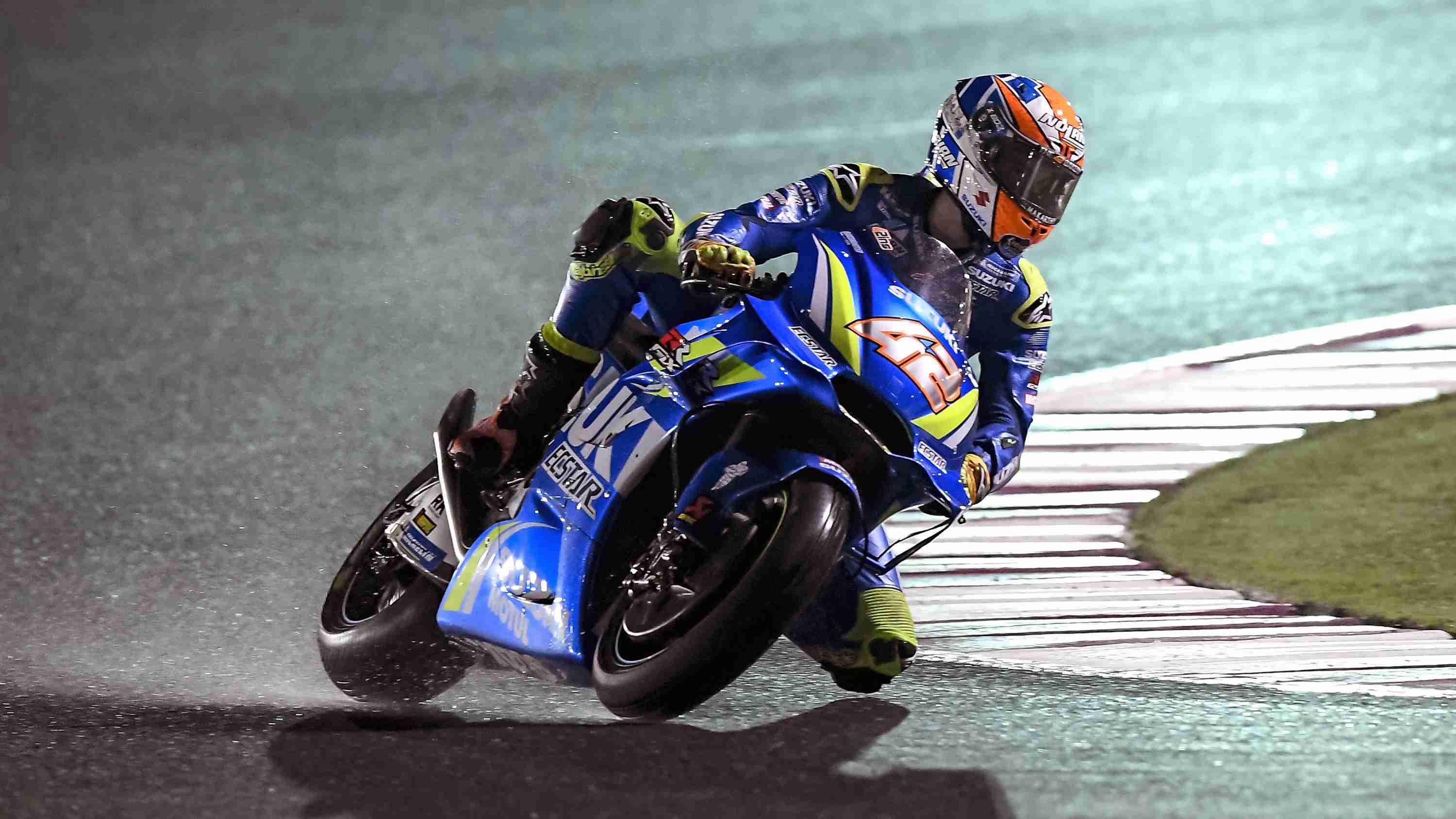 At the end of the session the track was flooded by the organisers in order for the riders to check the conditions should rain strike Qatar during the race weekend, it was compulsory for the riders to check the feel of the tyres and the glare of the wet track under the lights. With Andrea Iannone unable to ride, this task was undertaken by Alex Rins.