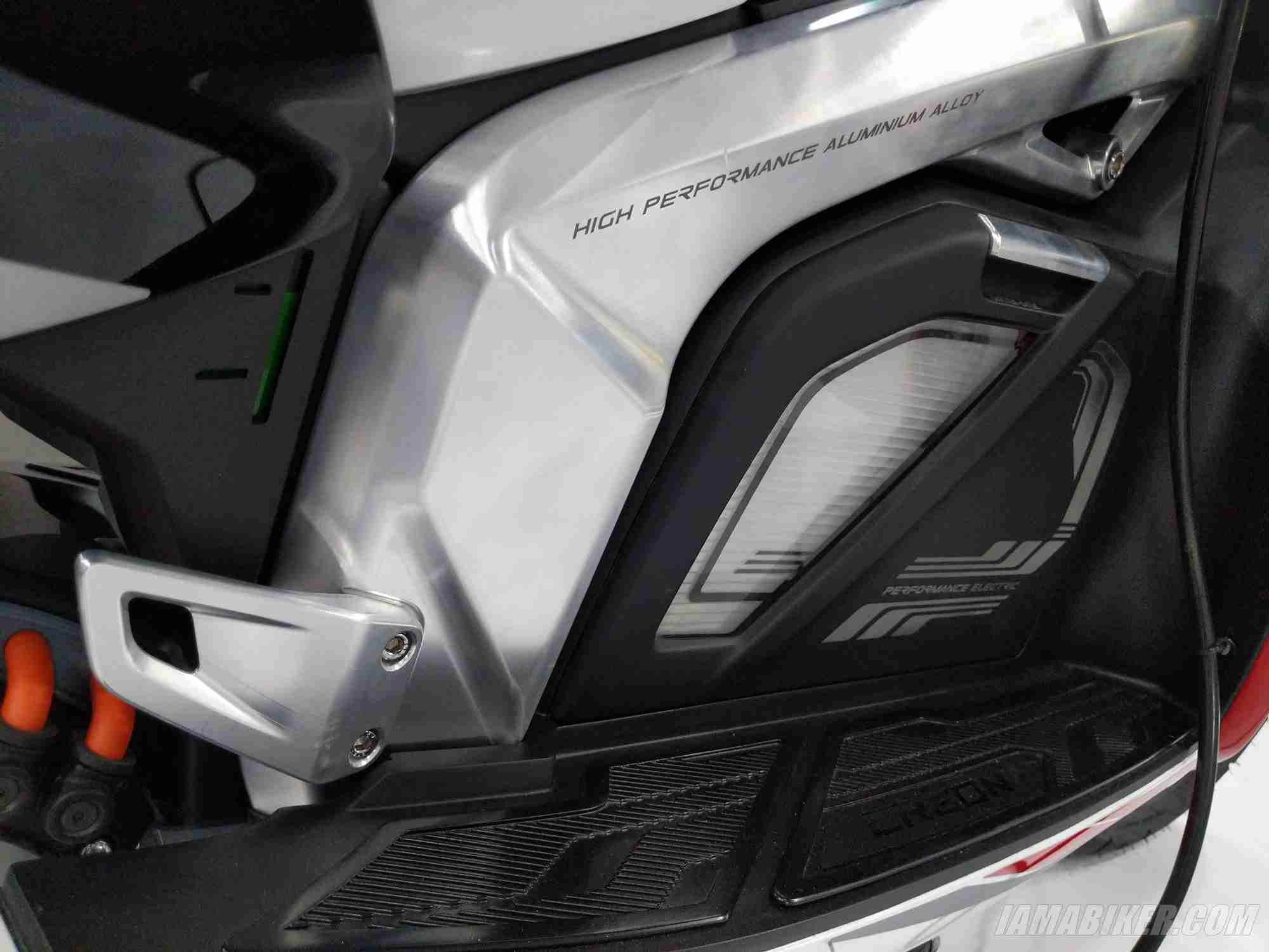 The TVS CREON also features an Aluminum lightweight perimeter frame, which provides the chassis stiffness and helps in improving the handling of the scooter. Diamond cut alloy wheels with wide section TVS Remora tubeless tires provide significant grip during cornering. The front and rear discs with single channel ABS in the front ensure safe and precise braking for all road conditions. The superior performance and sporty handling of the vehicle is achieved with advanced light-weight platform and optimised Centre of Gravity (CG) distribution. In terms of utility features, the scooter can secure a full-face helmet under the seat and is also equipped with a smart phone charger.