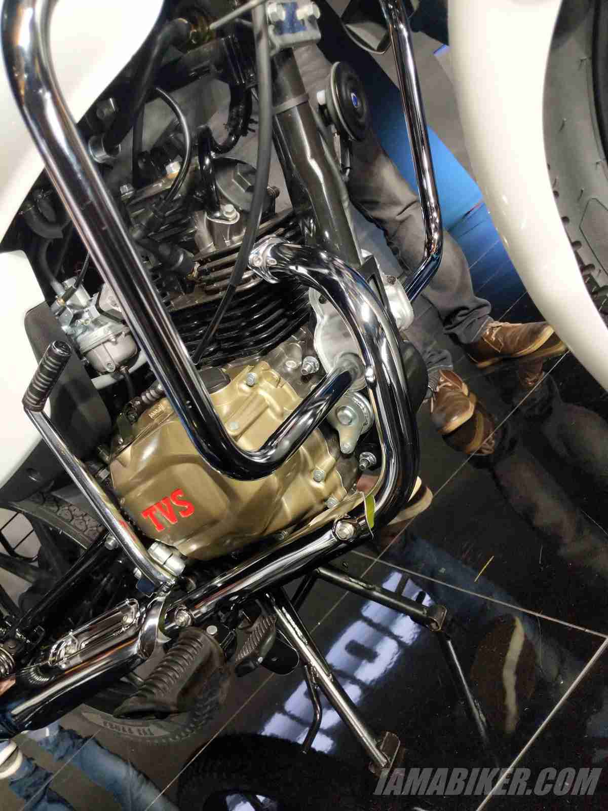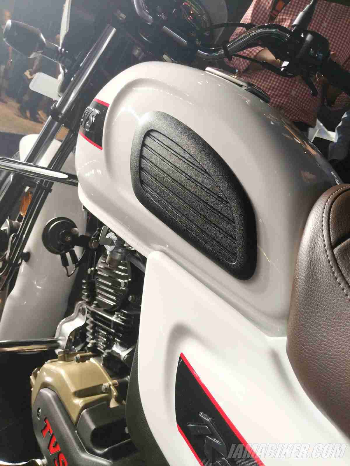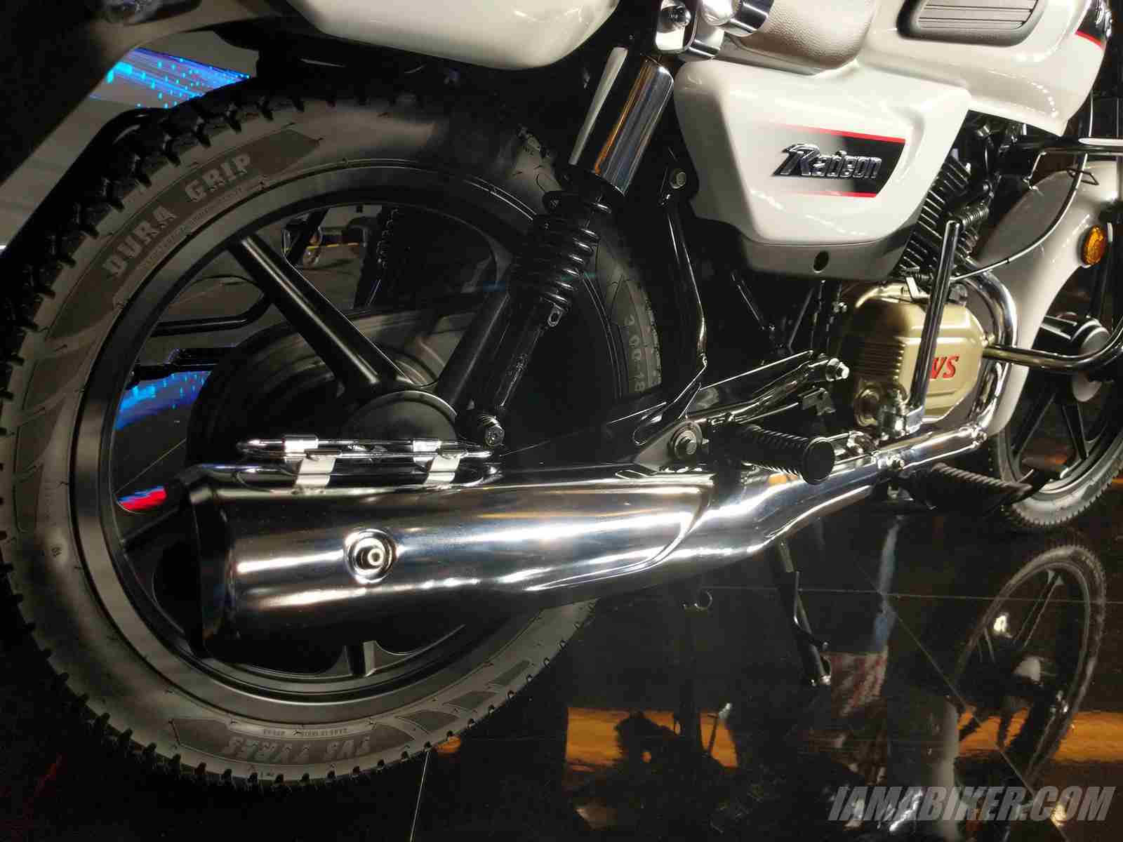 The motorcycle boasts of a stable, horizontal, design with stylish chrome ascents. The powerful headlamp, with a chrome bezel, is integrated with DRL (Daytime Running Lamps). TVS Radeon bespeaks a unique classic look with its stylish petrol tank’s ribbed thigh pads, a chrome finished speedometer, shock absorber shroud and silencer.