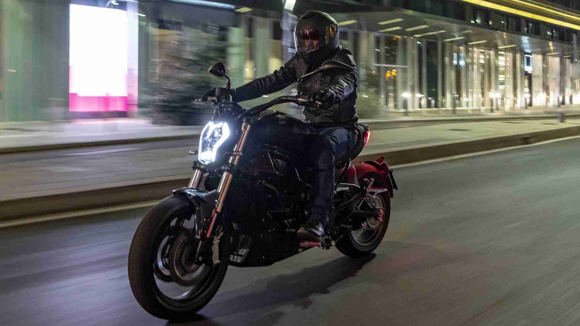 There are edgy and sleek LED headlamps with a chiselled fuel tank and integrated single-piece seat in tandem with the ultra-wide handlebar. There are split-LED tail lamps which are positioned on both ends of the rear. The number plate and turn indicators are accommodated on the rear tyre hugger as well.