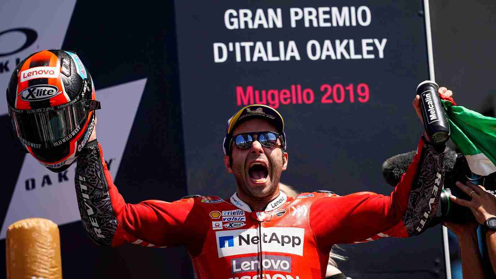 The Mission Winnow Ducati team enjoyed a Sunday to remember at the Mugello Circuit with Danilo Petrucci claiming the win at the Italian Grand Prix – his maiden victory in MotoGP – in a sprint finish to the line ahead of his teammate Andrea Dovizioso, third under the checkered flag, only three tenths of a second behind.