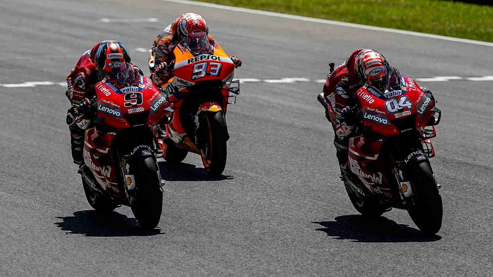 Starting from first row, Petrucci immediately joined the leading group together with Dovizioso, who got off to a great start from third row and entered turn 1 in third position. Both riders exchanged overtaking moves repeatedly and towards the end, with only four riders left fighting for the victory, Petrucci defended the lead to precede Márquez on the finish line by only 43 thousandths of a second, with Dovizioso third quickly in tow.