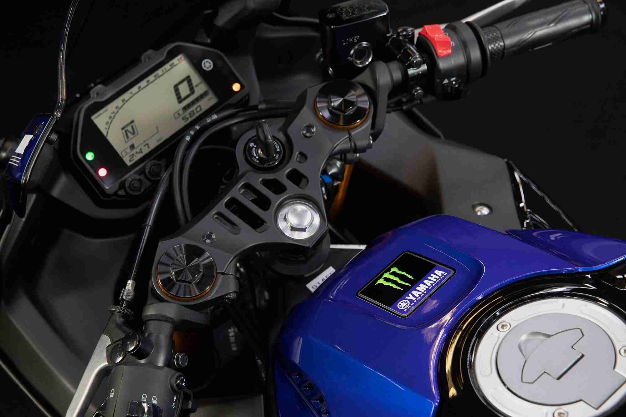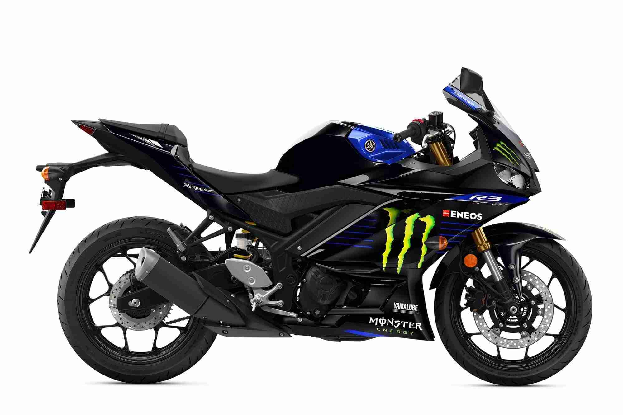 The new 2020 Monster Energy Yamaha MotoGP Edition YZF-R3 is the ultimate homage to the YZR-M1 MotoGP look and will be available at authorized Yamaha dealers beginning in July for an MSRP of $5,599(internationally).