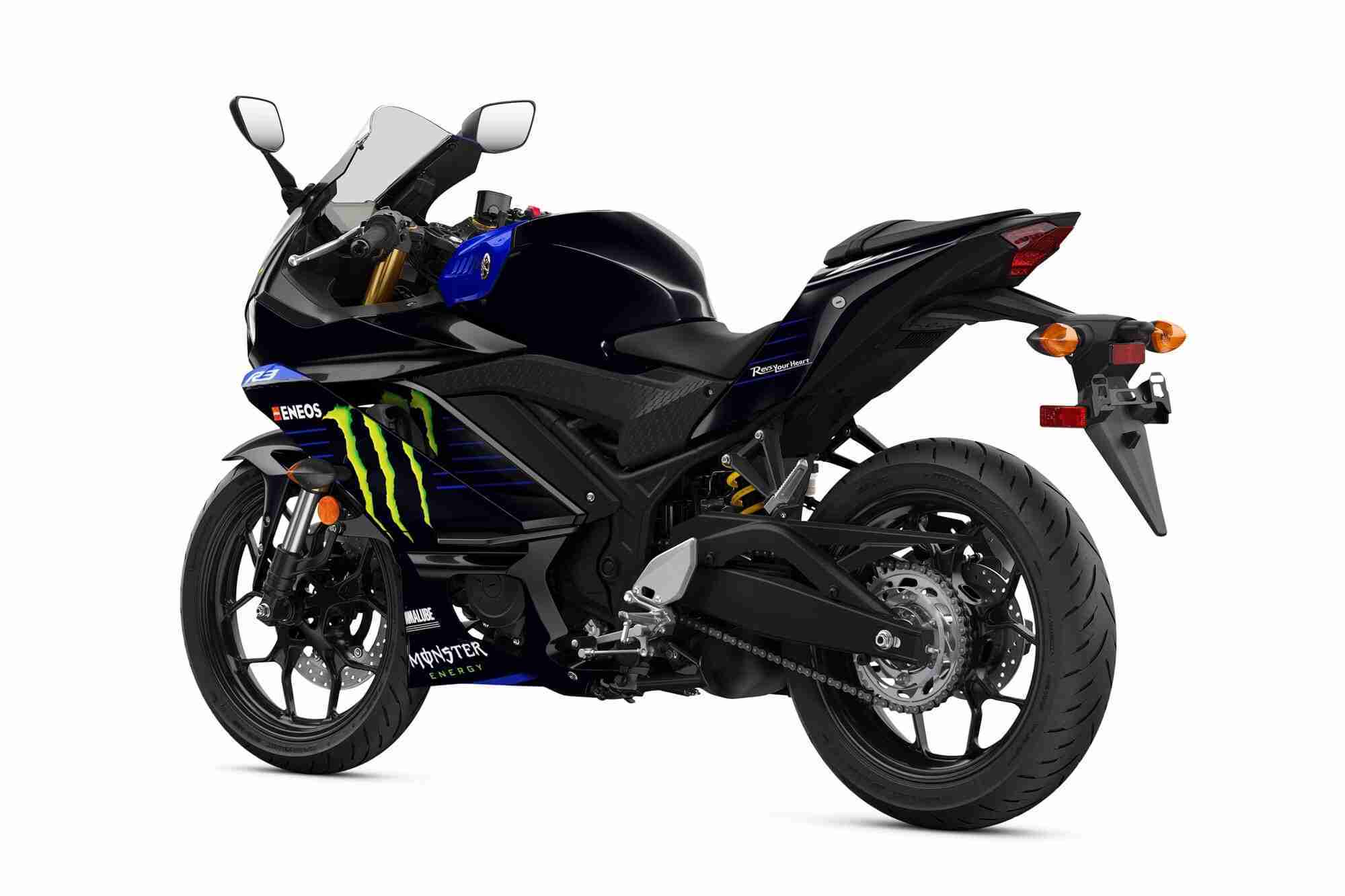 This special edition YZF-R3 calls to its racing pedigree with an edgy, aggressive look that reflects the Monster Energy Yamaha MotoGP YZR-M1’s styling, made famous by MotoGP superstars Valentino Rossi and Maverick Viñales.