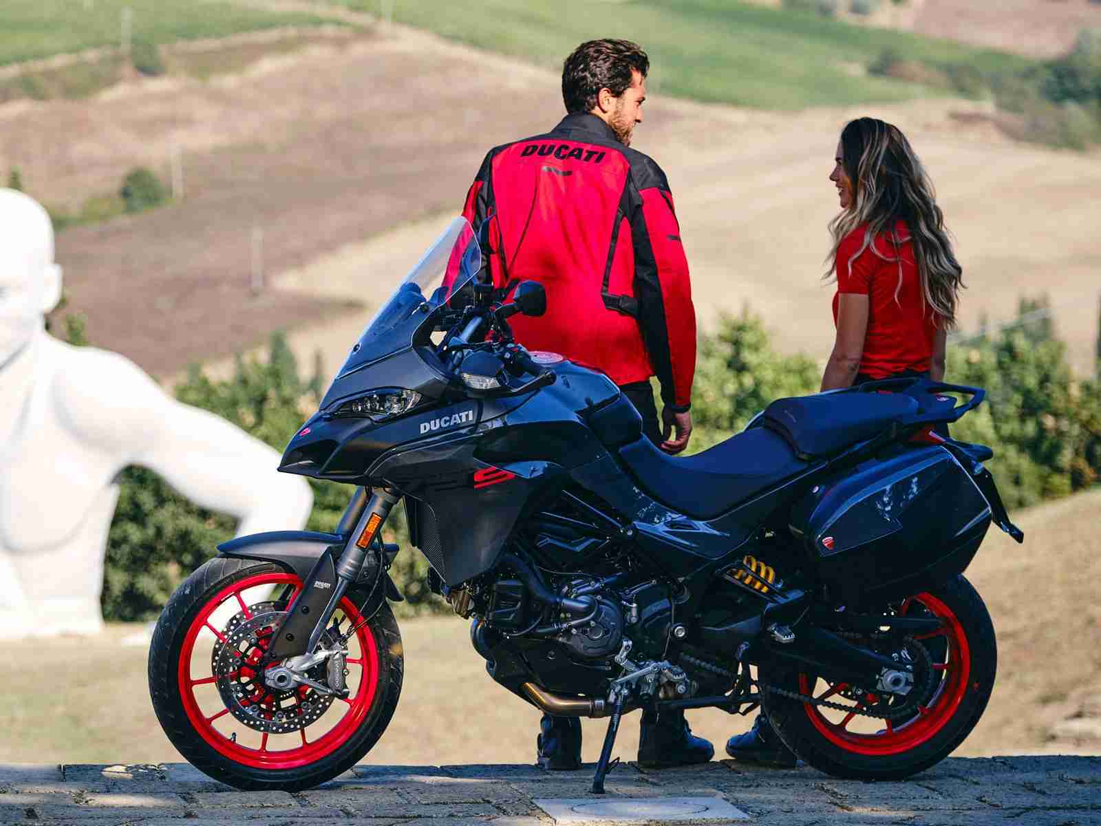 The bike’s chassis is agile and intuitive, with a 19″ front wheel that ensures a smooth, comfortable ride, always with the right level of reactivity and precision. Extremely versatile, the bike is also ideal for urban use, thanks to the effectiveness of the Ducati Skyhook Suspension EVO semi-active suspension system (standard on the S version), which can absorb roughness and unevenness of the ground and always guarantee the ideal set-up of the vehicle, improving safety and comfort.