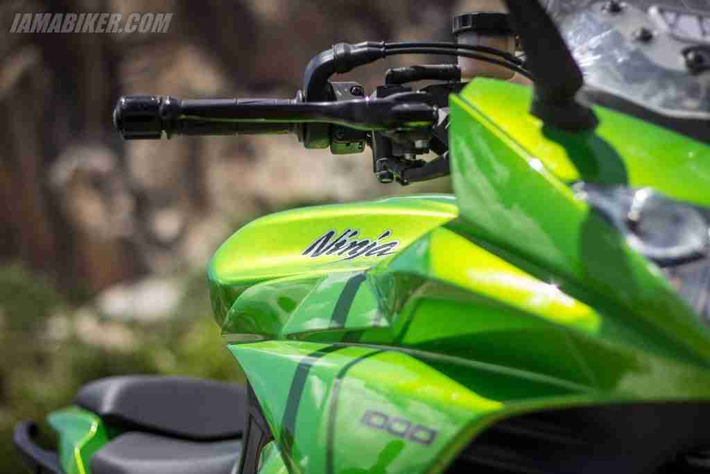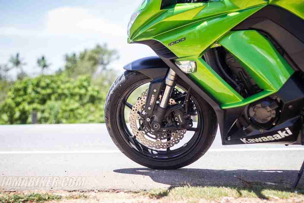 The Kawasaki Ninja 1000 is not all about how assuredly it goes. It stops just as nicely. Twin 300 mm petal discs up front coupled with the 250 mm single at the rear along with ABS brings this fast sports tourer to a complete halt quicker than you’d have imagined anything weighing all of 231 kgs could. The Kawasaki Ninja 1000 also comes with three level traction control that aides the rider well under difficult and varying circumstances. The traction control, or KTRC as Kawasaki calls it, is a welcome addition that it’s almost similarly engineered sibling the Z1000 does not get. The amount of intrusiveness of the traction control can be set by the rider in three levels, and for the truly adventurous, can be turned off for good as well. The engine power has two modes it can be put into, full power with all of its firepower at your disposal and a lite mode that restricts the output to 70% of its max output. Both of these features are lacking in its naked alternative, the Z1000 and makes the Ninja 1000 stand out that much more.