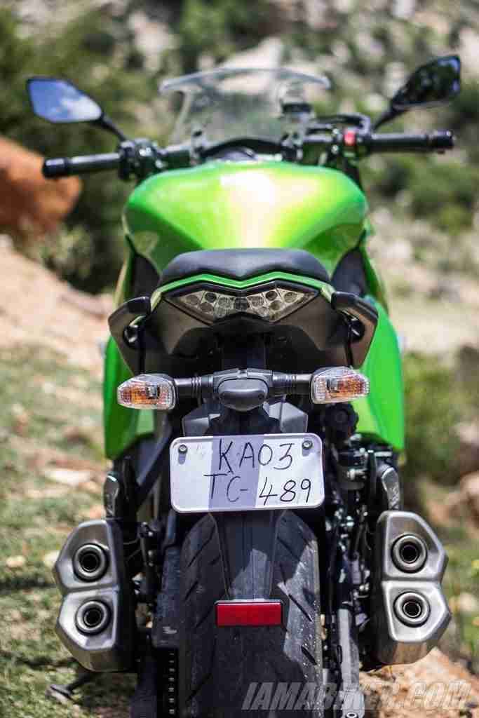 The styling cues on this motorcycle aptly follows its purpose. It isn’t racy or aggressive like its race going brethren and it is not imposing and “look at me I’m so angry” as it’s naked sibling. It treads the middle ground and looks quite sharp in its own right. The twin headlamps setup up front with the fairing draped tightly over its aluminum twin-tube backbone frame gives the front a very sleek look, yet somehow managing to stay understated enough to slip under the radar while on the go. The Ninja 1000 follows through on its design language at the rear as well, with that sharp yet not overly done tail section blending neatly into the rest of the package. One look at the Kawasaki Ninja 1000 and you know you are in the presence of something substantial yet comforting. What really manages to catch your visual attention, though, are the short twin end cans on either side. Looking good, however, is not the only thing they do well.