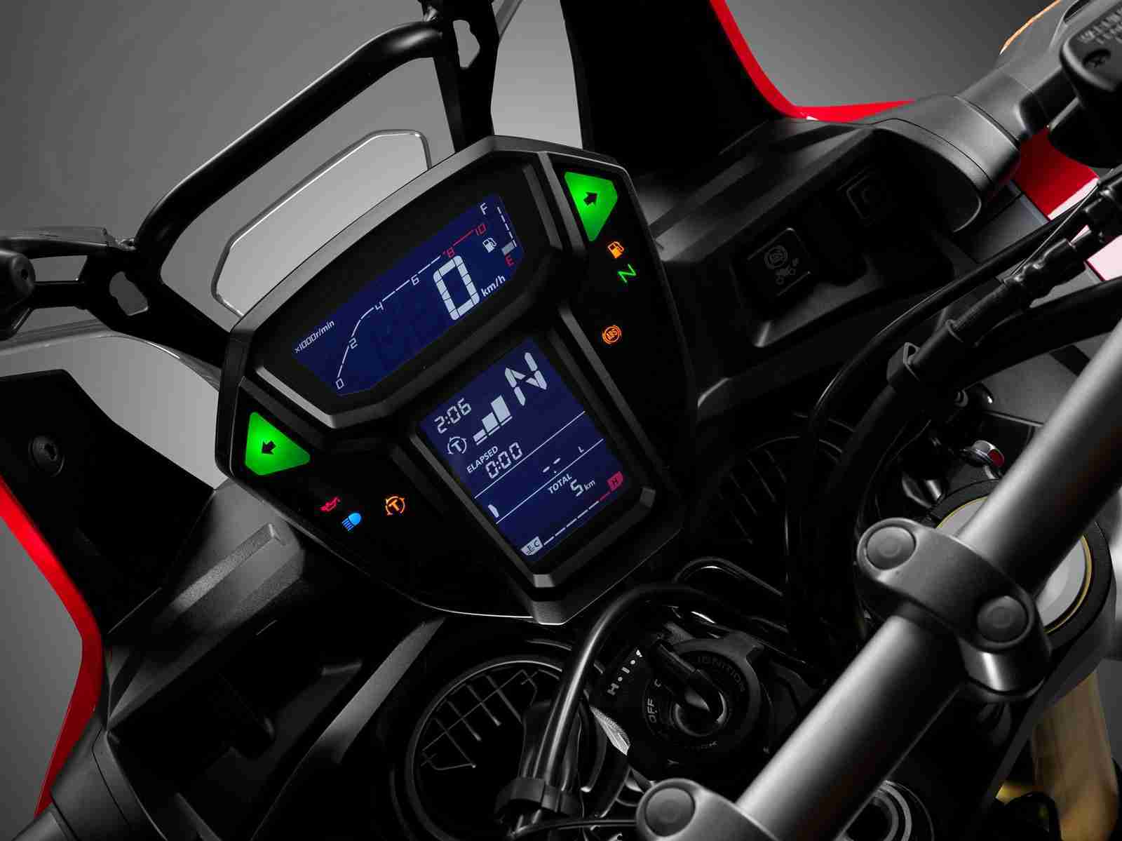 Honda have developed an all new parallel twin engine and transmission for the new Africa Twin. The engine is a 998cc twin that draws heavily on Honda’s CRF250R/CRF450R competition machines. The engine adopts the four-valve Unicam (per head) head design which keeps the overall dimension of the engine small. It produces a peak power of 93.8 hp at 7,500 rpm and 98 Nm torque at 6,000 rpm. The performance of the engine is optimized to keep the bike tractable and usable all day long for touring.