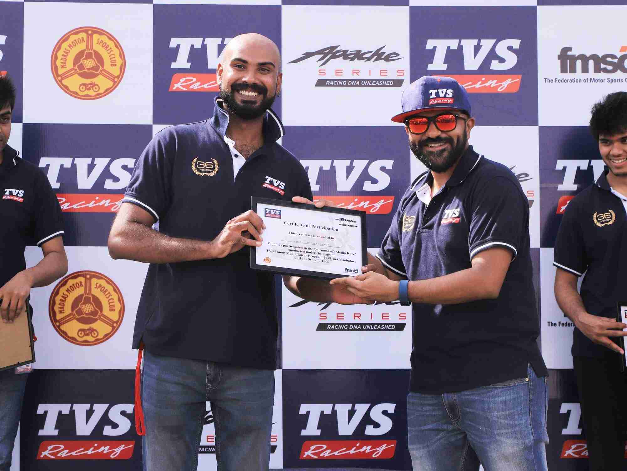 I would like to thank the TVS Racing Team for the amazing opportunity and for their warm hospitality during the whole event. They left no stone unturned in making sure we had fun while keeping us safe and teaching us how its done!