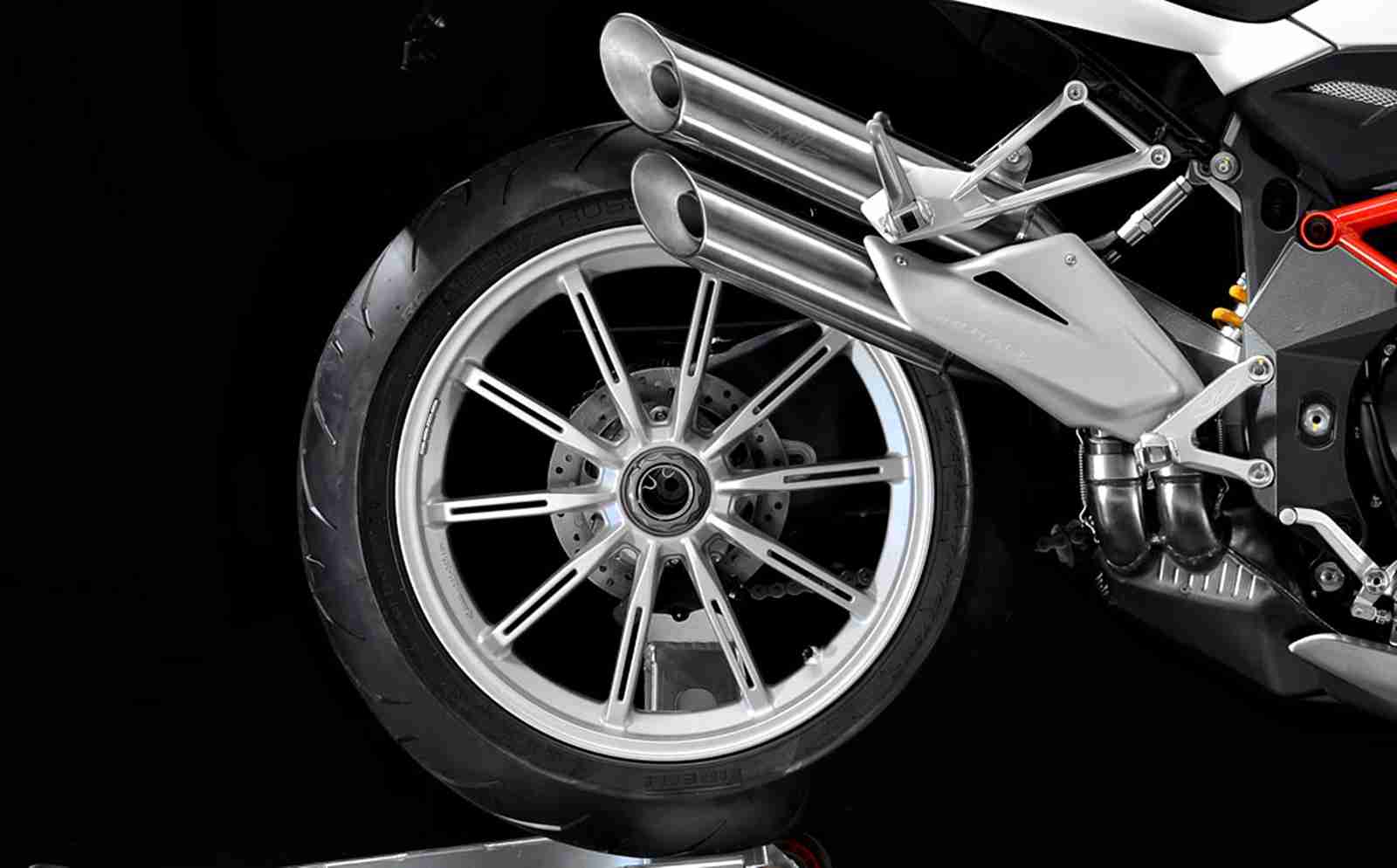 The three models are namely the MV Agusta Brutale 1090, Brutale 1090R and the Brutale 1090RR. All the 3 models feature an eight level traction control, a tubular steel trellis frame, a single sided exhaust, ten spoke wheels, 50mm USD forks, six speed transmission and radial-mount Brembo calipers. All the 3 models feature the same 1078cc four cylinder engine and to add to the options MV Agusta is offering the 1090 and the 1090R also with a 142bhp engine option. The 1090RR version gets a more powerful 156bhp engine, a adjustable hydraulic compression damping and a slipper clutch.