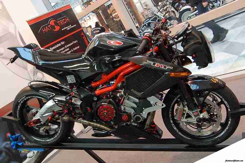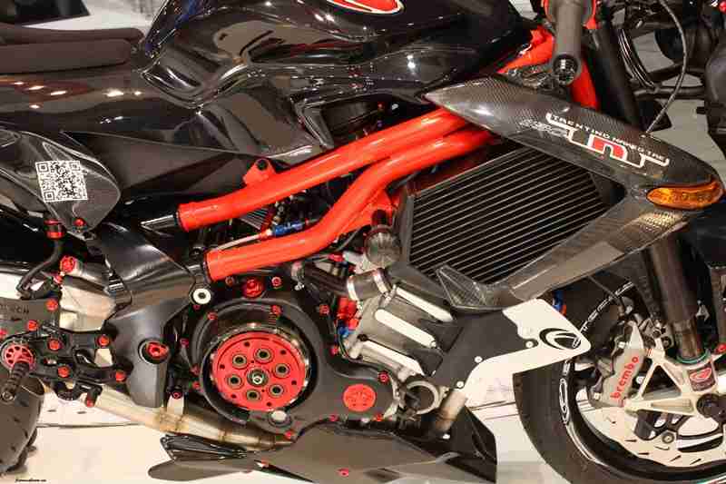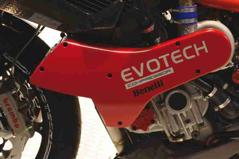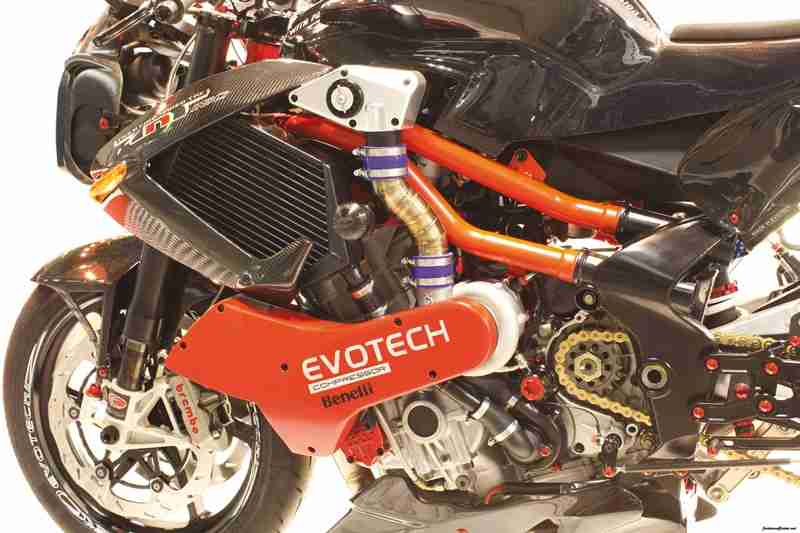 The Benelli TNT Tornado 1130 with its 3 cylinders and 12V DOHC now produces a max power of 193BHP and max torque of 145Nm. The chassis is from a limited edition Benelli TNT Tornado that uses a special mix of chrome-molybdenum and die cast aluminium in sections that facilitate for mid corner flex. Braking is handled by Brembo’s at both ends, suspensions by Ohlins in the front and a fully adjustable AB1 Mupo unit at the rear and magnesium alloys from OZ for the wheels. In addition to all this Evotech has added a multifunction digital meter through which the rider can change various attributes of the supercharger and the ECU. Check out the video below to see the bike in action, jump to 0:41 to see it on the rollers and 1:14 to see it on track.