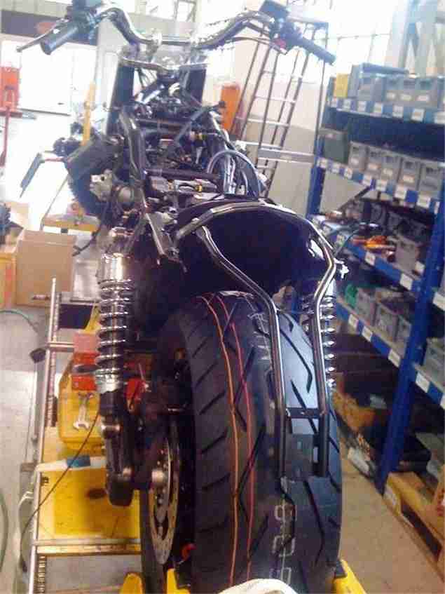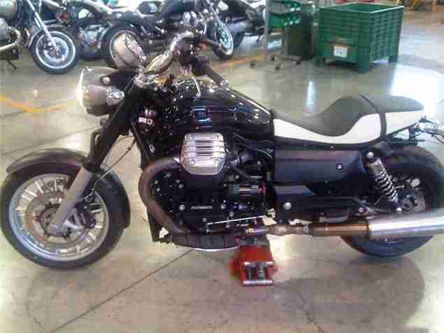 Earlier this year we brought you confirmed information about the Moto Guzzi California. Also confirmed is 2 more models in the naked and the touring categories. Spy pictures here confirm show the California with a more traditional and less expensive suspension system. These pictures also confirm that the motorcycle is still not yet complete with a lot of parts still not yet finalized for the final production model.