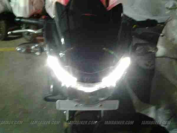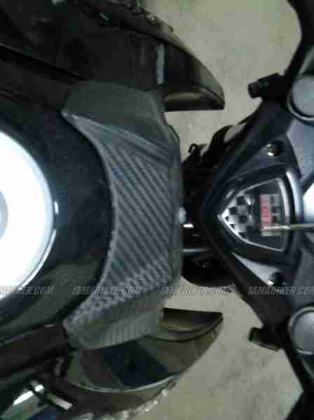 Finally came the time for spy photographs. The new TVS Apache RTR now pretty much clearly visible, gets LED DRL (Daytime running lights), slight design changes to the headlight assembly, a new sticker job and carbon fibre looks alike’s thrown around everywhere. Also noticeable is a metallic ‘Apache’ sticker on the tank fins and a sticker on the rear panels that sports the Indian tri-colour.