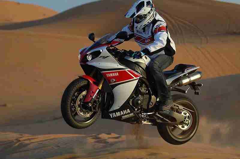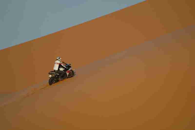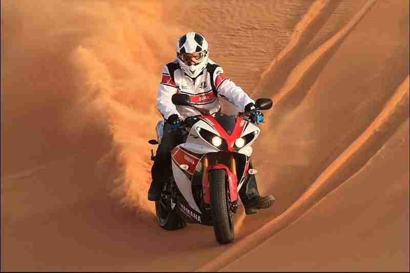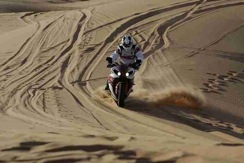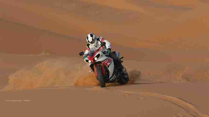 We have seen what he can do at the Dakar, we have seen his will surpass the impossible, but an Yamaha R1 on sand? really? Six-time Dakar Rally winner, Frenchman Stephane Peterhansel (now Editorial Director of the L’Integral magazine) recently took on an interesting challenge — to ride a Yamaha R1 on the sand dunes of Merzouga, in Morocco. And all it took for him to accomplish the feat was a set of hand-cut Michelin tyres and replacement handlebars. Going by the pics here, Peterhansel seems to have had fun surfing sand dunes aboard his 180bhp sportsbike.
