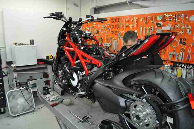 ‘We had been selling a few Diavels at the dealership and when I rode the bike, I fell in love, but I felt like there was something missing. With a long wheelbase and a big fat rear tyre, the Diavel is probably uniquely suited to handling even more power than the stock Testastretta engine kicks out since, unlike most other performance cruiser options, it has highly specialized suspension, wheels and brakes straight from the factory,’ says Chad, the man behind the project. ‘I planned on being first one in the world to do this, and it looks like I am. I hope Ducati enthusiasts will enjoy it and be excited to see the finished product. I don’t think we will develop or sell kits, but you never know’.