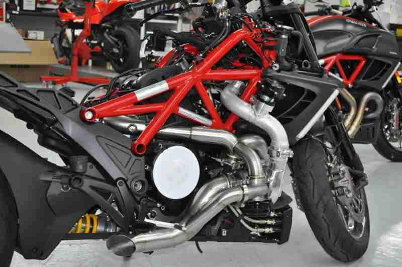The Ducati Diavel’s stock configuration puts out a commanding 162 horses and is a mad machine scrambling for grip when pushed hard, but then there is always some of us that want more. That need has given birth to the turbo charged Ducati Diavel that now sends out a massive mind boggling 236 horses to the rear wheel.