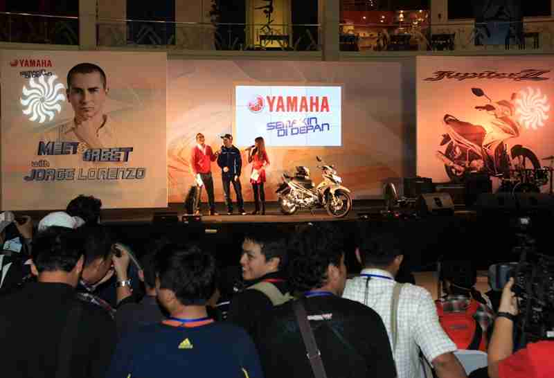 Following the morning coaching session Lorenzo went on to help Yamaha Motor Indonesia launch the new Yamaha Byson motorcycle to an audience of over 3000 Indonesian Yamaha Dealers at a special event just outside Jakarta. The 150cc Byson street bike is Yamaha’s star new machine for 2012 in Indonesia. Spies was due to co-host alongside his team mate however a bout of food poisoning unfortunately meant he was unable to participate.