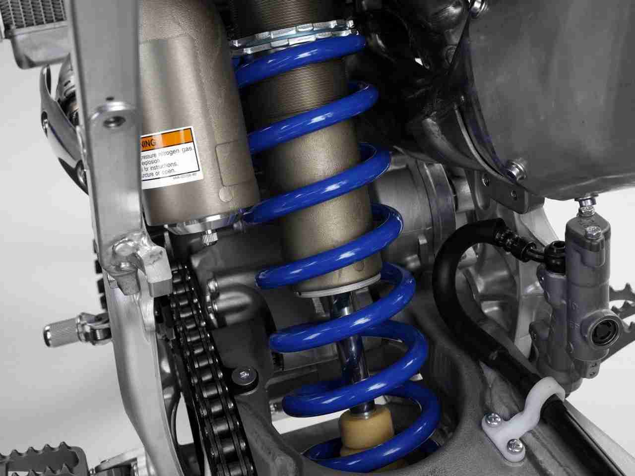 - The front suspension has proven KYB® air-oil separated forks. It adopts new spec inner and outer tubes coupled with optimized suspension settings. The new rear suspension also features a new reservoir location and spring spec with settings optimized for ideal damping characteristics to match the new chassis dimensions.
