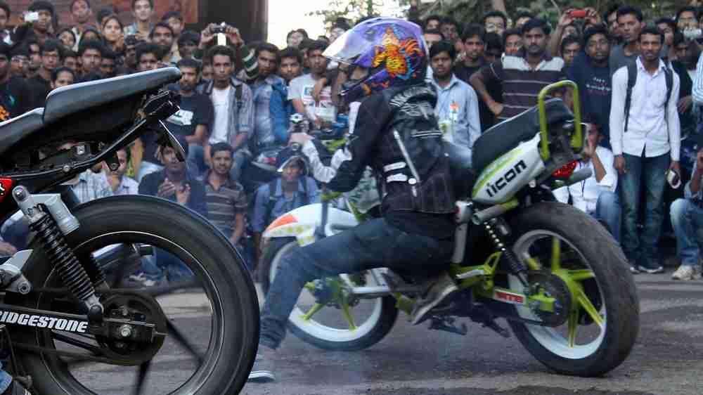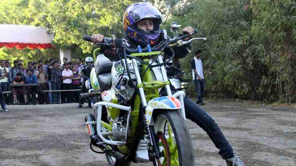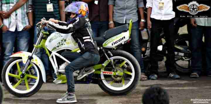 It all began with a keen interest to watch people performing stunts on their bike. I was 13 and whenever I used to go for tuitions, I always used to see my town boys popping up wheelies and stoppies in the streets. I was fascinated by them and wished I could stunt like them and then came the day came when I tried a christ on my Honda Activa. Eventually I was successful in doing that and I was amazed and so very happy. My friends around helped and encouraged me to learn stunts on a bike and so whenever I got free time from school and my studies I practised popping wheelies and stoppies. I was 16 then and was only getting started.