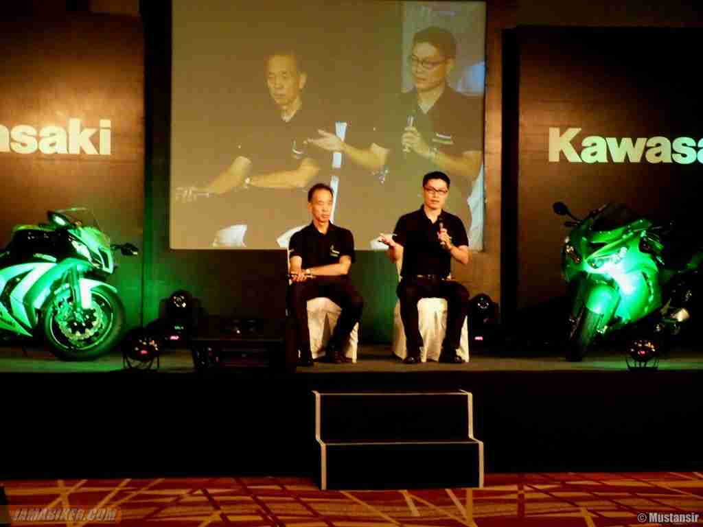 Present at the launch was Mr. Yuri Horiuchi (M.D. IKM) and Mr. Shigeto Nishikawa (Dy. M.D. IKM). The event started with Mr. Nishikawa giving a brief introduction of IKM. India Kawasaki Motors is a 100% subsidiary of Kawasaki Heavy Industries. They currently operate in the same premises as Bajaj Auto in Akurdi, but have an independent setup. They have two separate assembly lines for the engine and frame capable of assembling 500 units. Currently the Ninja 300 and 650 arrive as CKD (Completely Knocked Down) units from their plant in Thailand. But the new superbikes, will be arriving to the Indian shores as CBU (Completely built units) owing to the limited numbers and constraints in logistics. He also mentioned that the niche market for 1000-1600cc motorcycles has been growing exponentially in India since 2011. The Market for these big bikes is about 400 units/year and is growing at 30% per year. IKM aims to capture 20% of this market share by 2015.