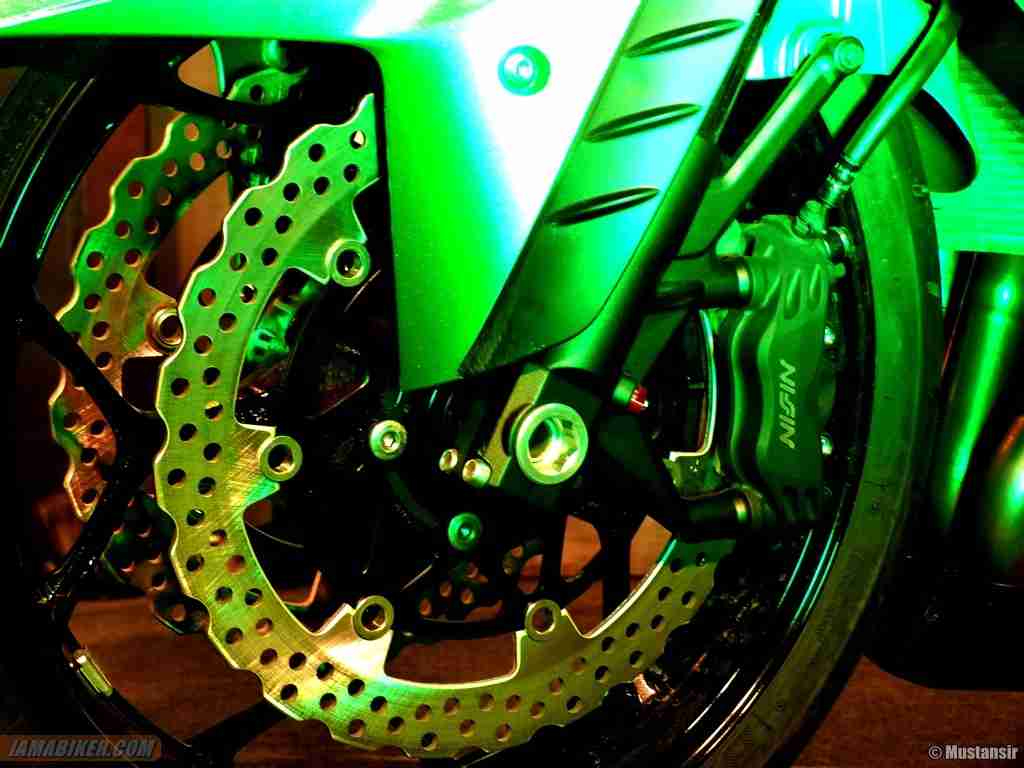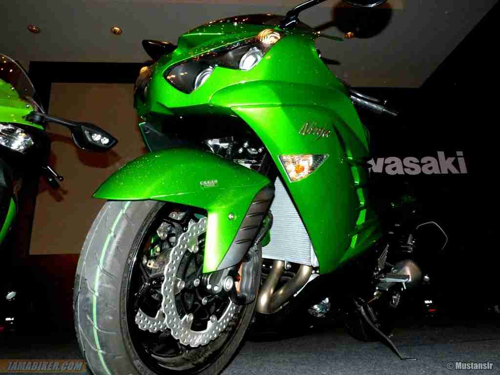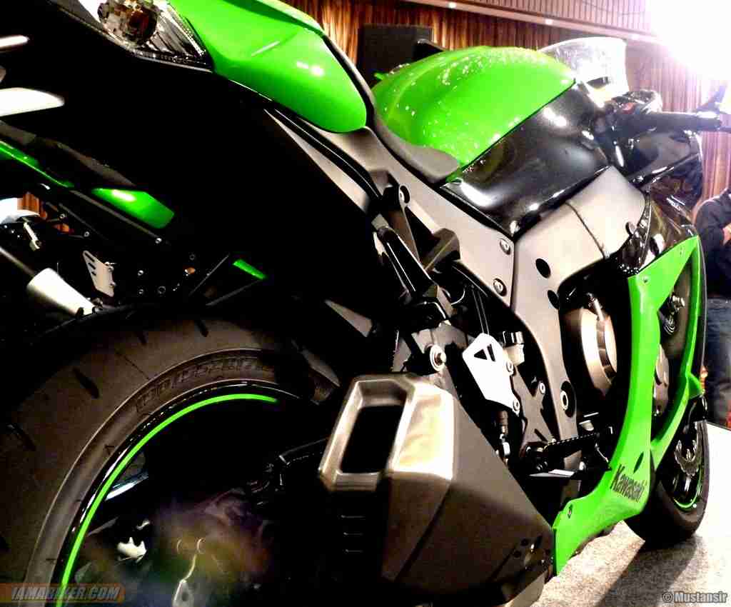 The 1,441 cc liquid cooled engine is an in-line four cylinder masterpiece having DOHC with 16 valves making 200 Ps at 10,000 RPM that is bumped up to 210 Ps with the Ram Air technology. 162.5 Nm provides the oodles of torque expected form this engine. This bike makes about 7 Ps more power and 7.5 Nm more torque than its predecessor the ZX14, all thanks to the range of improvements made to the engine internals. The longer stroke cylinder is coupled with revised unpolished ports, completely redesigned and higher lift cams and shorter gearing. This is coupled with attention to the fuel economy that has been improved by the ECU which meters fuel directly with the riders throttle input. Thus claiming to be a greener and more environmentally conscious than the older version.