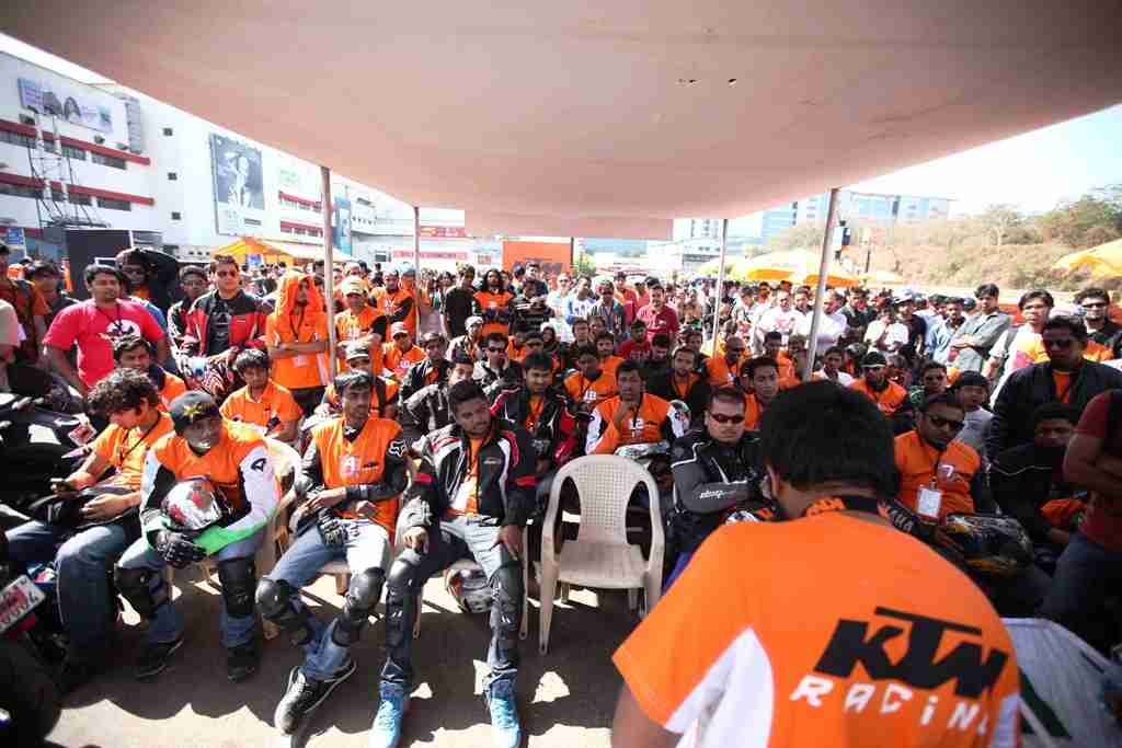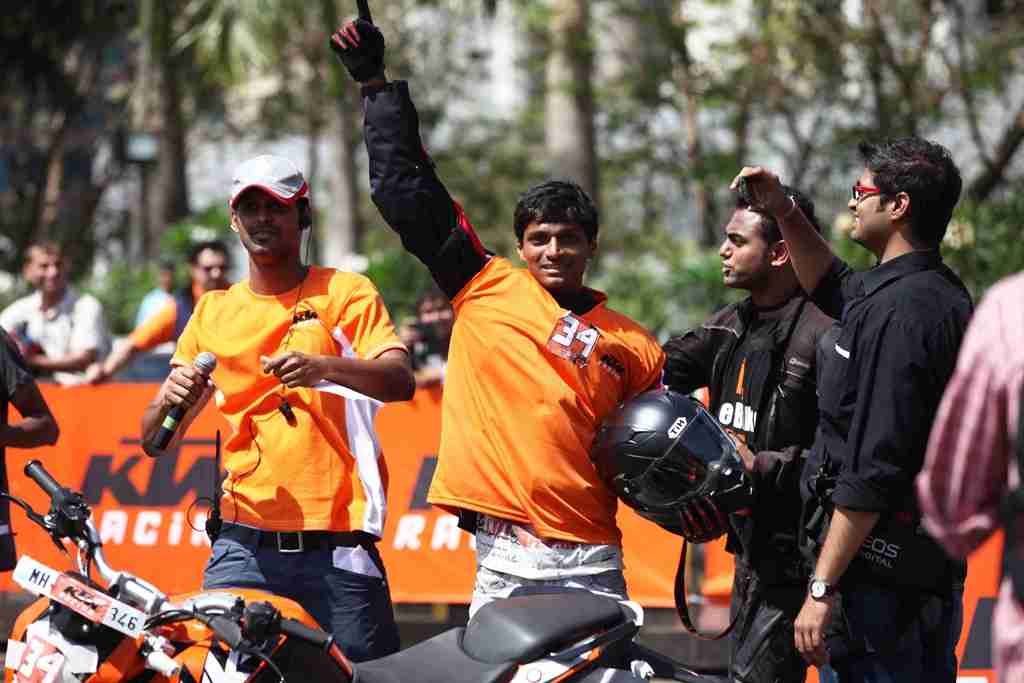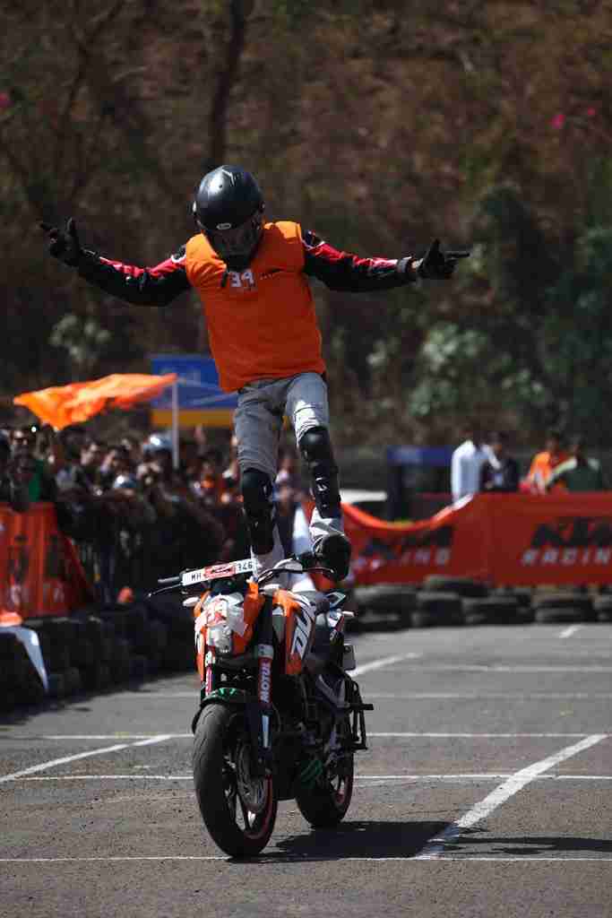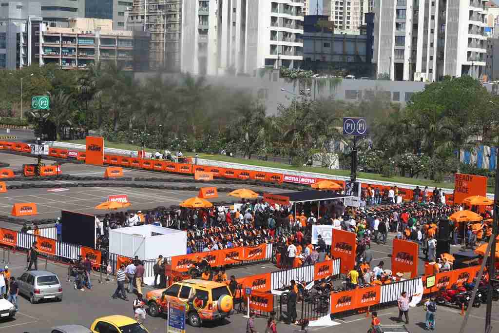 The “Orange Day” was organized at Inorbit Mall Parking Area, Link Road, Malad West, Mumbai. The Orange Day started at 9:30 AM with the riders registering themselves for the racing. A classroom session was organized by a racing expert on the basics of racing and how to extract the most out of the KTM 200 Duke. This was followed up by a demonstration on the track and then the final race. Podium finishers were awarded and the event ended with a breath taking “stunt show” on KTM 200 Duke. All the KTM owners in the city were invited to participate in the Orange Day. Besides all the action on the track there was service-camps, stalls for KTM Powerwear and Powerparts, refreshments, music and a general ambience of fun and camaraderie.