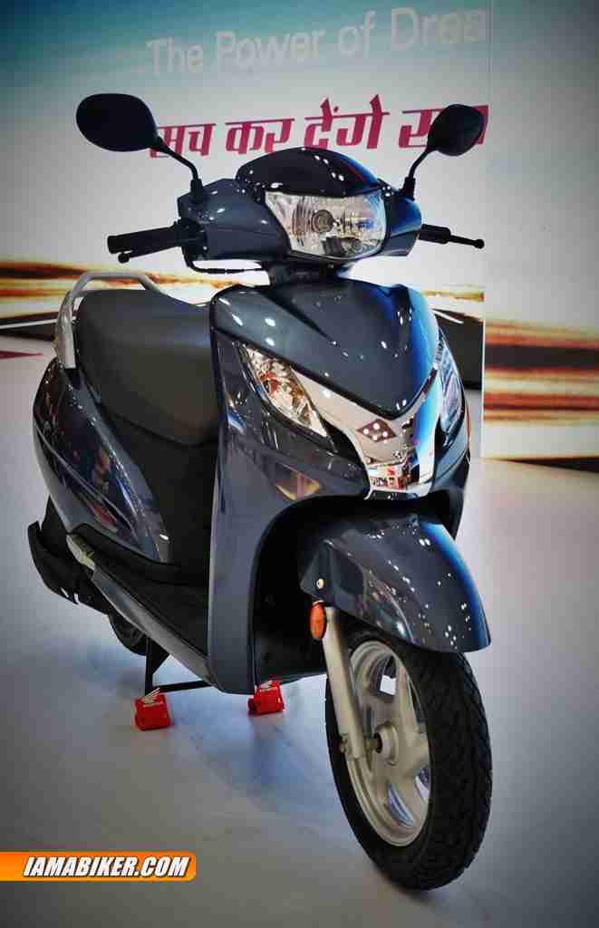 We were the first to brake the news yesterday, and now it’s official, the Honda Activa 125 has been unveiled at the Auto Expo 2014. This new Activa will be powered by a 124.9 cc engine that produces 8.6 BHP @ 6500 RPM and 10.12 Nm of torque @ 5500 RPM. The more powerful engine should ideally see a drop in mileage, but Honda claim that due to its HET technology it will give as much as 55 kmpl. The Honda Activa 125 will feature a 190 mm front disc brake as an option but will have drum brakes as standard. Telescopic front forks will also make its presence felt for the first time in the Activa range of scooters. It will also feature the Combi braking system that has become pretty much standard on all Honda scooters. The scooter will also have a digital meter performing the job of the odometer and the fuel meter and the classic analog needle for the speedometer. It comes with 5 spoke alloys for the disc option and overall design is mix of the recently launched Activa I and the existing Honda Activa. There is a slight increase in the wheel base and the ground clearance for the Activa 125 over the existing Activa, while the seat height remains the same. The scooter will have both the self and kick start option. The new Activa 125 will be available across showrooms from April and there has been no word on the pricing yet, but we expect it to be around the 52 thousand mark. Colour options to include the existing white, red, grey and beige metallic ones. The company also took this opportunity to introduce new colour options for the Dream Yuga and the CB Trigger.