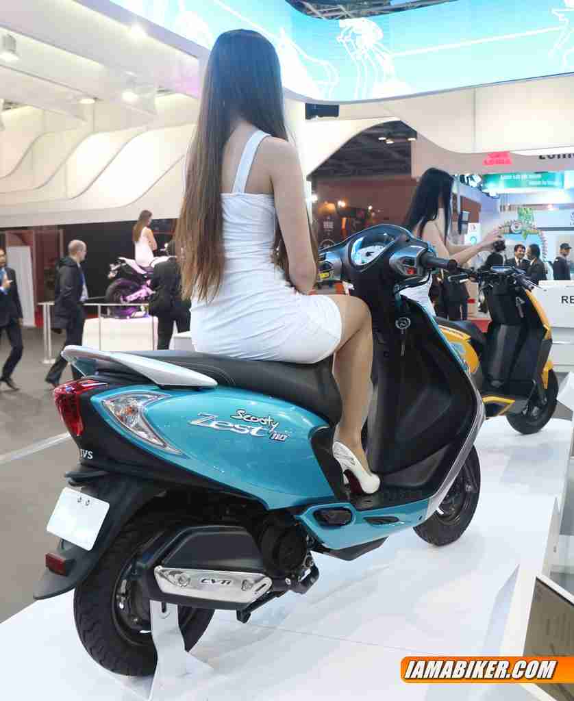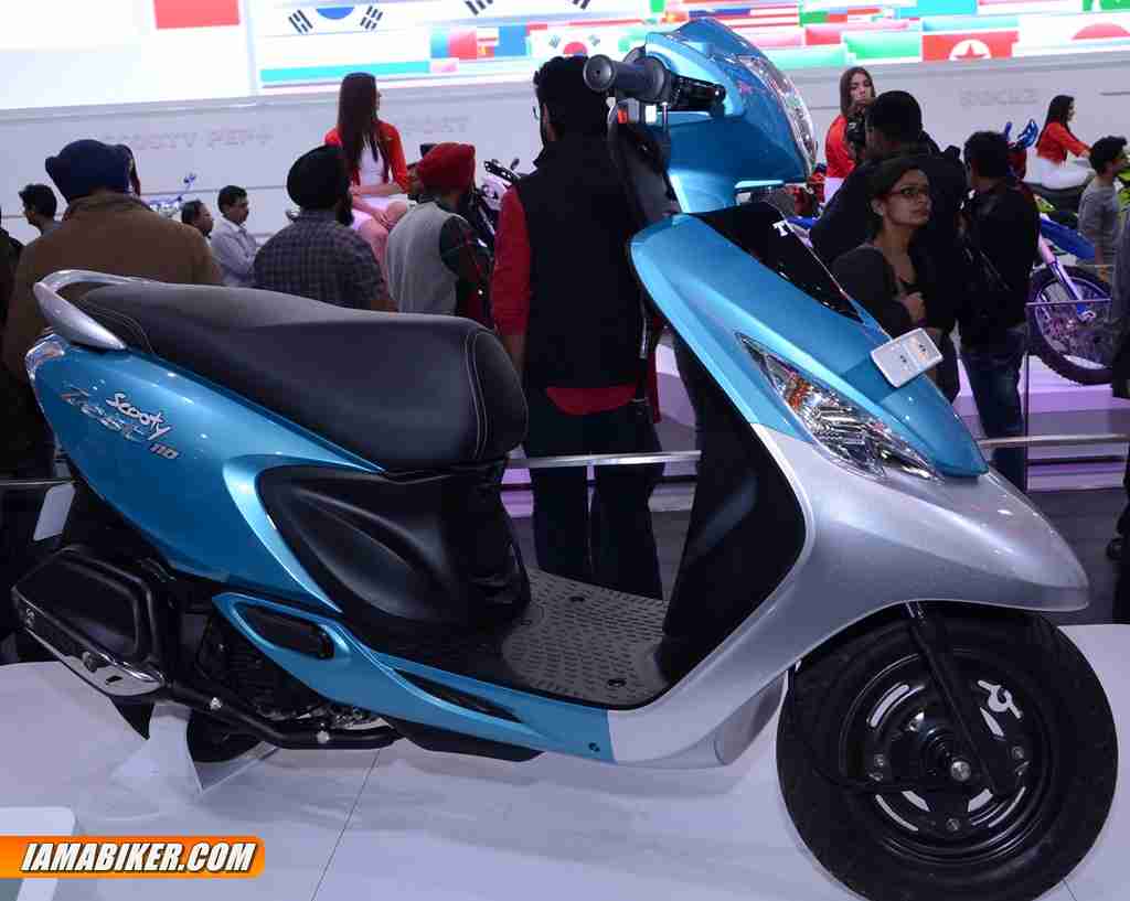 It was not all concepts at the TVS stall for the Auto Expo 2014, they also presented couple of mass market models, one among these was the new TVS Scooty Zest, an updated and more modern looking version of the existing Scooty range. The new TVS Scooty Zest has the same 110 cc engine from the Wego and provides for a simple and easy ride. This engine produces 8 HP @ 7500 RPM and 8 Nm at 5500 RPM. The overall size of the scooter is apt for those looking for a very easy and light option. The TVS Scooty Zest, is an ideal mix of weight, dimension and handling and delivers best-in-class fuel economy while ensuring better pick up and ride comfort.The all new TVS Scooty Zest embodies elegance while flaunting a design language that invokes expressions of fun, freshness and freedom for young girls. Its soft form blends smoothly with crisp and fluid lines and tense highlights. An array of new and exciting features along with perfect ergonomics and comfortable seating assures a peppy and stress free ride. Designed to partner the independent woman of today, TVS Scooty Zest will be available in vibrant colours and comes with the promise of being a stylish and agile commuter. The scooter will reach showrooms in the coming months.