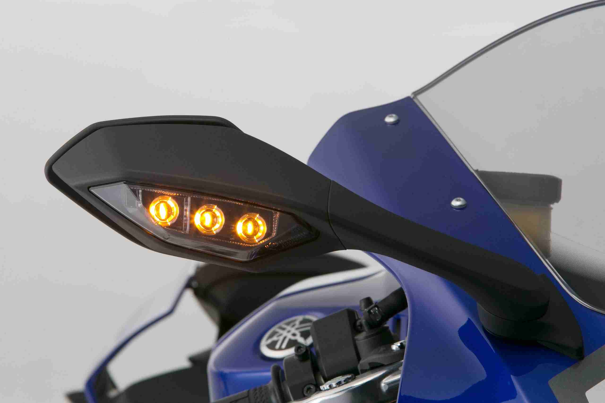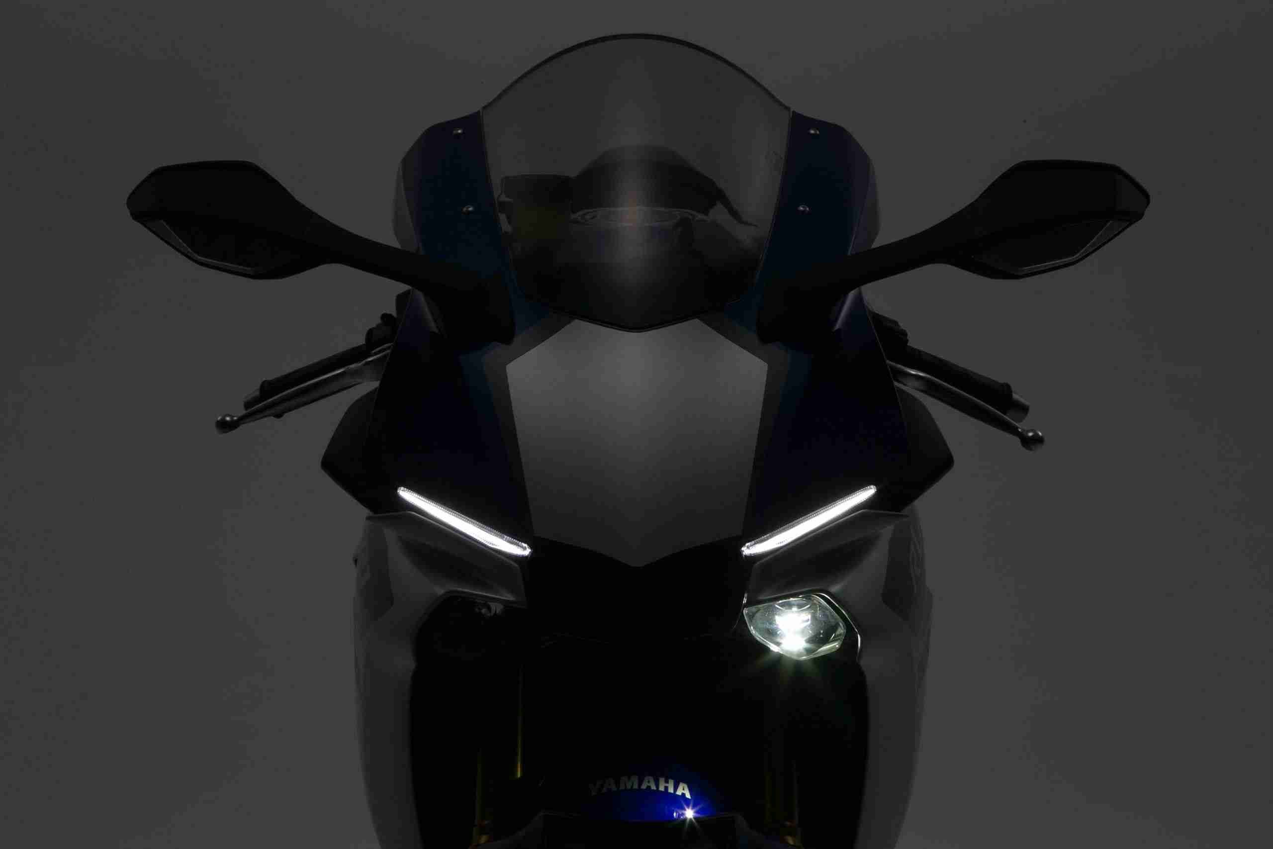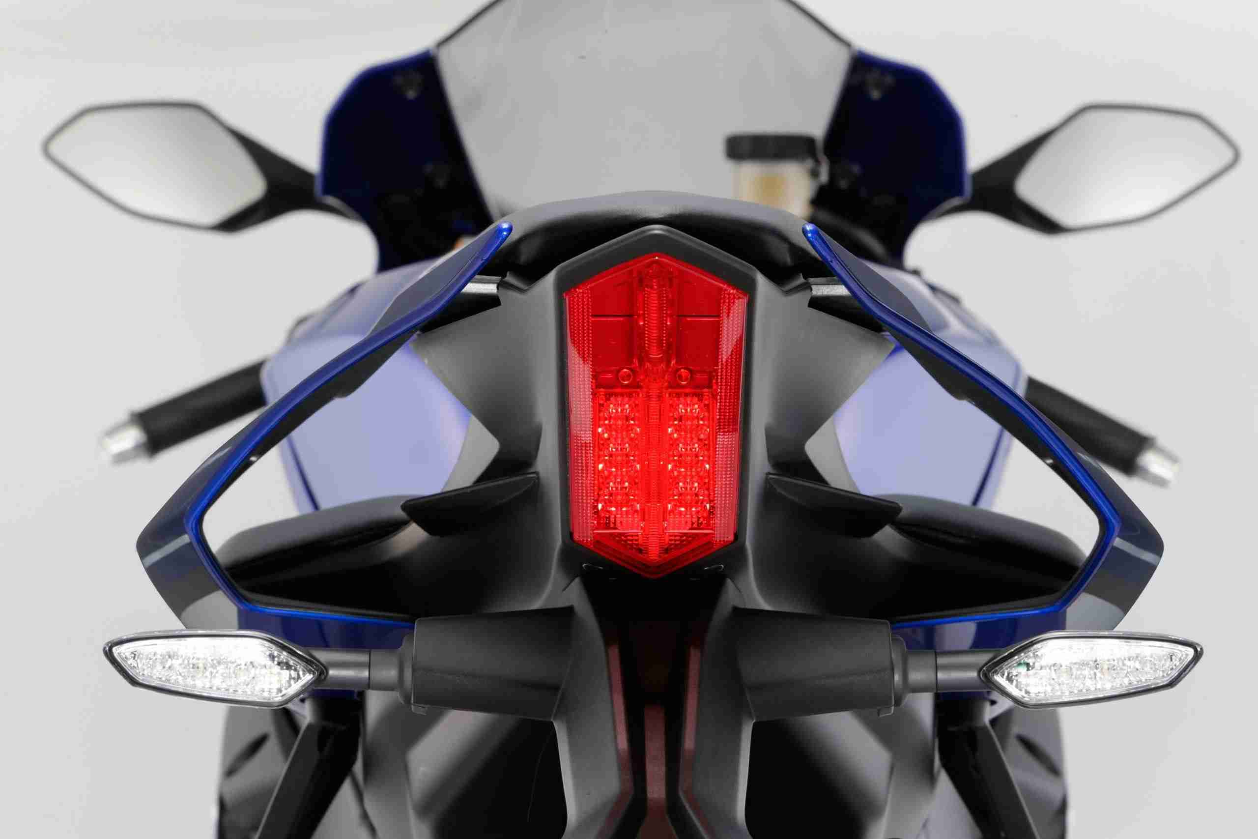 By using aerodynamic analysis to create a more efficient shape, Yamaha’s designers have succeeded in producing a cowl and screen that deliver a reduction of 8% in wind resistance. Not by chance, its central air intake and high windscreen have a strong resemblance to the YZR-M1, and its high aerodynamic efficiency helps to deliver lower lap times on the circuit. In a further move to achieve a low overall weight, Yamaha’s designers have chosen to equip the new R1 with LED headlights and LED position lights. As well as being light and compact, LED lights deliver high luminosity while also requiring a low wattage.