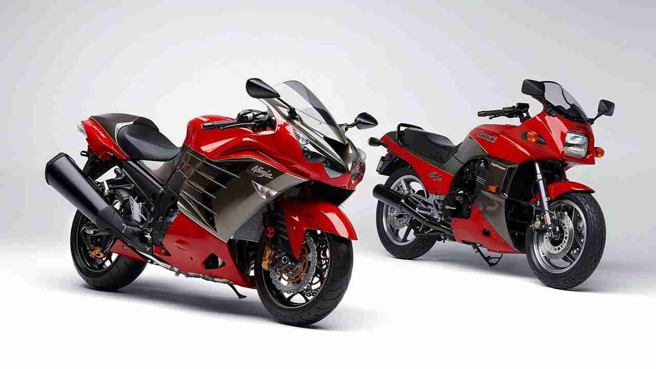 In order to commemorate 30 years of the Ninja name, Kawasaki have announced 30th anniversary editions of its top selling sports bike line up. The Ninja ZX-14R, the ZX-10R, ZX-6R and the Ninja 300 get a special anniversary edition. The ZX-14R comes in a limited edition 300 pieces and is priced at just $300 above the normal version. While the ZX-14R will come is two-toned Firecracker Red/ Metallic Graystone combination, with gold pinstripe accents and matching calipers, a color reminiscent of the 1984 Ninja 900 (GPZ900R), the remaining Ninja’s will get the a paint scheme that is similar to Kawasaki’s WSBK bike ridden by Tom Sykes. All bikes, mechanically remain the same. While the red Zx-14R looks awesome, the green white combo on the remaining anniversary editions do not really appeal, at least to us. Also we in India will not be getting these as well. We leave you with the photographs.