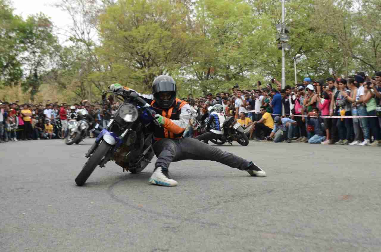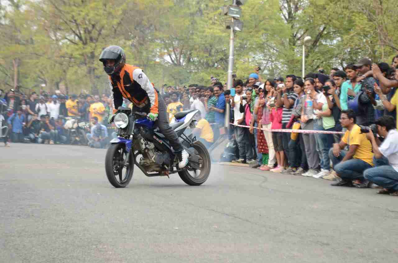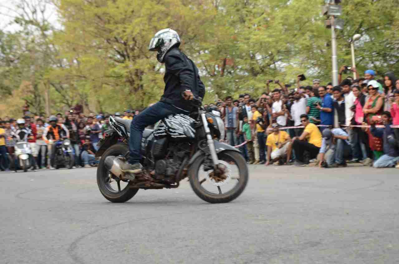Events this year included a rock show by Dark Light, a stunt show by Zero Gravity and Team Young Bloodz all of which kept the 1500 odd bikers from 39 groups at their feet and asking for more. There also was a felicitation ceremony for bikers who have made their permanent mark on the community either by battling all odds or doing what they do best so very well that they are an inspiration to the rest of us. These bikers included Bindu Reddy – Founder at Hop On Gurls, Phanikar HP – a hard core tourer, Mr. Murthaza Junaid – Founder at Art of Motorcycles, Joel Joseph – a very popular tuner and Navneet Bhardwaj – a biker who has not let his personal misfortune of an hearing impairment interfere with his biking. Other attractions at the event included a dyno set up by Race Dynamics, Product displays, MotoGP screening and a barbecue.